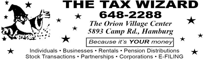 THE TAX WIZARD: Now taking appointments for 2022 returns. 5893 Camp Rd., Hamburg. 716-648-2288.