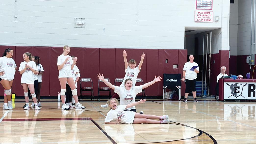 The varsity girls volleyball team and some of the jv girls volleyball players, volunteered their time to help coach volleyball for students in grades 3-6. The big sisters and little sisters were announced on the court before the varsity match and performed a handshake together for the crowd. It was a wonderful experience that really cultivates the love of volleyball in Eden!