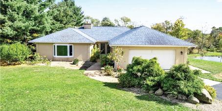 Sited on 5 acres with scenic views from every vantage point! Welcome to this current gentleman's estate offering 3 bedrooms and 2 full baths in a custom-built ranch. Easy first floor living with an expansive front entry and large bedroom suites flank both sides of the home. On center are the kitchen and great room with floor to ceiling windows to take in all of mother nature's glory! Soaring ceilings add to the open floor plan. Both suites have a WIC with access to the updated bath(s). The well-equipped kitchen with ample prep space, storage and built in appliances is sure to please. A 1290 SF mechanics workshop is heated, has surround air compressor hook ups, with a trolly hoist and comes with a commercial grade compressor unit, perfect for car enthusiasts, farm equipment or work from home business. Adjoining the workshop, you will find a 4+ horse stable with tack room overlooking pastures. Additional unfinished square footage can be found above in the walk-up loft space. Solid mechanics with newer main house roof 2017 Barn/Workshop 2021 round off this fantastic offering! Pond is 18’ deep and stocked. 100+ Ash trees recently cleared, land graded and seeded. A must see! ML #1571068 Price Reduced! $589,473