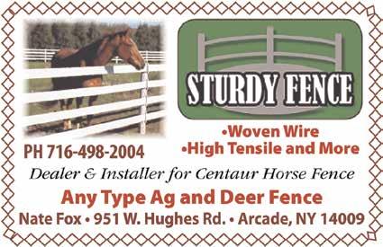 EDEN-NORTH COLLINS PENNYSAVER APRIL 29, 2023/ PAGE 11 STORAGE SHEDS LOWEST RENT-TO-OWN RATES IN NY! Visit One of Our Other Display Locations! 3892 Southwestern Blvd, Orchard Park • Pat: (716)570-3406 6500 South Transit Rd, Lockport • Jay: (716)292-1680 Southern Tier Production Shop • 7646 State Rt. 19, Belfast • Wally: (585)628-1043 New York’s Direct Source of Premium Portable Structures 7619 Erie Road, Derby • Pat: (716) 570-3406 MANY IN STOCK FOR IMMEDIATE DELIVER CUSTOM BUILT AND DELIVERED IN 20 BUSINESS DAYS FREE delivery within 50 miles of place of sale Why mini storage?? There’s no need to drive down the road, waste time, waste gas and waste money; just rent a structure! Plus, after renting it, you get to keep it for a lifetime! 90 DAYS SAME AS CA$H or “So much more than a shed” Keep your local economy ticking, buy locally made products. Huge selection on the lots for immediate delivery. Beat the Spring rush, reserve yours today! DON’T JUST LET ANYONE CUT YOUR TIMBER! Call your local Forestry Consultant FREDERICK SAFFORD FORESTRY CONSULTANT, LLC 716.574.6432 Timber prices have never been better! Dealer & Installer for Centaur Horse Fence • Woven Wire • High Tensile and More Phone: 716-498-2004 Any Type Ag and Deer Fence Nate Fox • 951 W. Hughes Rd. • Arcade, NY 14009 Spring Advertising Promotions available through Memorial Day!! Call 716-992-4625 or email penny@edenpennysaver.com EDEN-NORTH COLLINS PENNYSAVER Serving Eden, North Collins, Langford, Brant, Lawtons, North Boston, East Eden P.O. Box 114, 8603 South Main St., Eden, N.Y. 14057 992-4625 FAX: 992-3041 www.edenpennysaver.com • e-mail: penny@edenpennysaver.com (716) 992-4625 • www.edenpennysaver.com