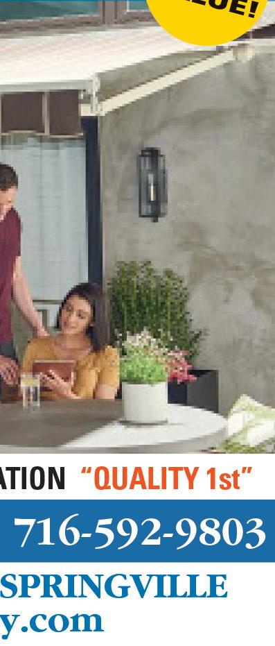 PAGE 10 / JUNE 22, 2024 EDEN-NORTH COLLINS PENNYSAVER (716) 574-7496 canfieldslandscapinginc.com Hamburg, NY SERVICES: Landscape Design & Installation Drainage Services Land Clearing & Brush Hogging Lawn Installations, Final Grading, & Hydroseeding Small to Midsize Demolition Work New Stone & Milling Driveway Installs Spring Cleanup Excavating Services Commercial/ Residential SALE ENDS JULY 6, 2024 $624 VALUE! Summer 2024 G.D. FULLER, INC. Roofing Serving WNY Since 1969! 716-498-2422 CALL TODAY FOR OUR BEST SUMMER PRICING!
