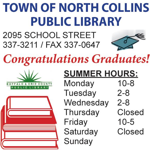 716-992-4867 Inspections • Service Replacements We can complete a thorough inspection any re extinguisher to make sure it is fully functional. FIRE EXTINGUISHERS HAIERʼS Congratulations Grads! Call for Specials! 716-992-9020 PAGE 8 / JUNE 22, 2024 EDEN-NORTH COLLINS PENNYSAVER EDEN-NORTH COLLINS PENNYSAVER JUNE 22, 2024 / PAGE 9