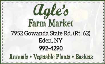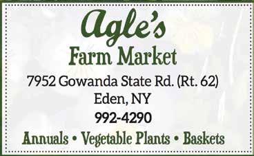 EDEN-NORTH COLLINS PENNYSAVER Serving Eden, North Collins, Langford, Brant, Lawtons, North Boston, East Eden P.O. Box 114, 8603 South Main St., Eden, N.Y. 14057 992-4625 FAX: 992-3041 www.edenpennysaver.com • e-mail: penny@edenpennysaver.com OFFICE HOURS: Mon-Wed: 9am-3pm Thurs: 9am-12pm. Deadline: Tues. 2pm