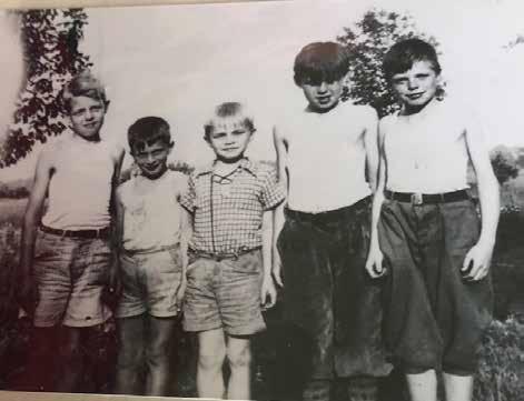 I always remember as a pre teen playing at someone else's house but never at mine. The Rice family lived next door and Bill Rice had the largest sand box in town. We spent a lot of time pushing our toy cars around in the sand. Bill's mother, Gladys ,was a kind lady and invited me to dinner once in awhile. I remember Bill liked mash potatoes because when the dish, partially full, reached me after Bill had dished out, there were none left. But Gladys had more. I was really impressed with the fact that Bill's father Ernie was the Fire Chief and that he had a hunting dog, a Brittany Spaniel called Freckles. Bill later in his busy life became a 60 year Fireman. OH!! yes, as we grew older, we enjoyed playing kick the can and ollie ollie over .Picture: L.R. Berdell Howell, Bill Rice, Bill Palmerton, Ferris Randall, Bob Roberts