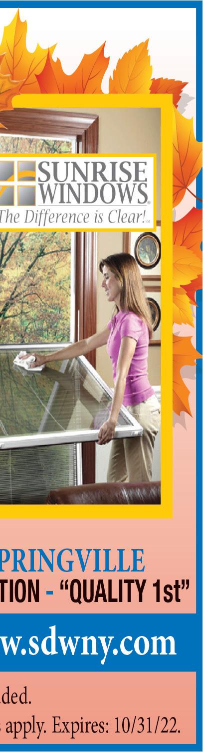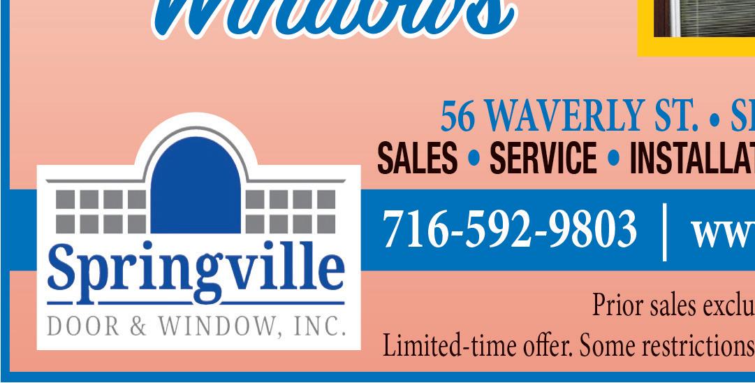 PAGE 2 / SEPTEMBER 30, 2023 EDEN-NORTH COLLINS PENNYSAVER 716 - 479-7261 Licensed Master Plumbers • Fully Insured • Locally Owned & Operated Specializing in Natural Gas, Water, Sewer & Electric Now Offering a variety of trenchless methods to minimize property damage! Trenchless Underground Utility Construction Commercial & Residential Service & Installation Eden Fall Recreation Programs www.edenny.gov/recreation 11 Main Street • Hamburg, NY 14075 716-648-7000 www.attealaw.com Personal Injury | Wills, Trusts, Power of Attorneys and Health Care Proxies Estate Planning and Elder Law | Estate Settlement and Litigation Residential and Commercial Real Estate Business Formations, Purchases, Sales, and Counseling Civil and Commercial Litigation | Guardianship Proceedings Criminal, DWI, Vehicle and Traffic | Matrimonial/Family Law Divorce Mediation Services | Landlord and Tenant Law | Bankruptcy Law ATTEA & ATTEA, P.C. ATTORNEYS AT LAW B RIAN F. ATTEA, E S q. R ICHARD J. ATTEA, E S q. RYAN F. M CC ANN, E S q. M ICHAEL PYS z, E S q. K EVIN R Au TENSTRAu CH, E S q. N ICH o LAS P. D E MARCo, ES q D EB o RAH M. B AR o NE, E S q. M ICHAEL F. B AR o NE, E S q. Serving Western New York and the Southern Tier for Over 40 Years BRIAN F. ATTEA, ESQ. RICHARD J ATTEA, ESQ. RYAN F. McCANN, ESQ. KEVIN RAUTENSTRAUCH, ESQ. MARY KAY LaFORCE, ESQ. NICHOLAS P. TUTTLE, ESQ. (716) 553 - 5882 joeykplowingandlandscaping.com Plowing and Landscape Services, LLC. FALL CLEANUPS COMMERCIAL SNOWPLOWING Now booking... Our brand new State of the Art low pressure softwash system safely and effectively cleans and sanitizes ALL exterior surfaces without damage caused by conventional pressure washing, adding value to your home. (716 ) 627 - 7679 OUTSHINED 716 • ROOFS • SIDING • CONCRETE • PAVERS • DECKS • FENCES • GUTTER CLEANING & MORE PENNYSAVER DEADLINE TUESDAY AT 2:00pm