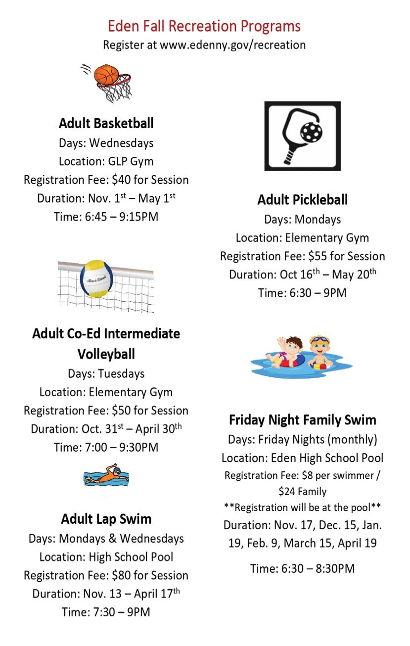 • Payments can be made online (Fees: $1.75 e-check, 2.45% credit/debit card, $3.95 Visa debit) townclerk@edenny.gov