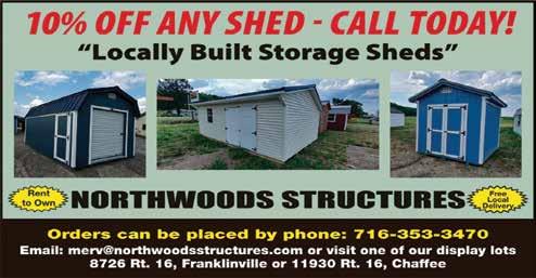 PAGE 14 / SEPTEMBER 9, 2023 EDEN-NORTH COLLINS PENNYSAVER WE DELIVER WITH 3 CONVEYORS. (716) 492-0849 • Commercial • Residential • Agricultural • Homeowners Serving the Southern Tier for 25 years. Monday - Sunday, Year Round Call us toll free for your next order 1-800-794-0849 •
