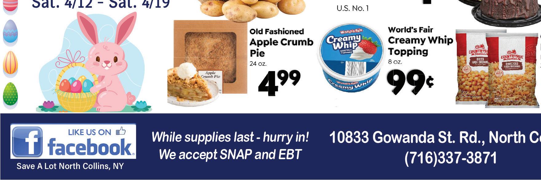 EDEN- NORTH COLLINS PENNYSAVER DEADLINE TUESDAYS AT 12PM