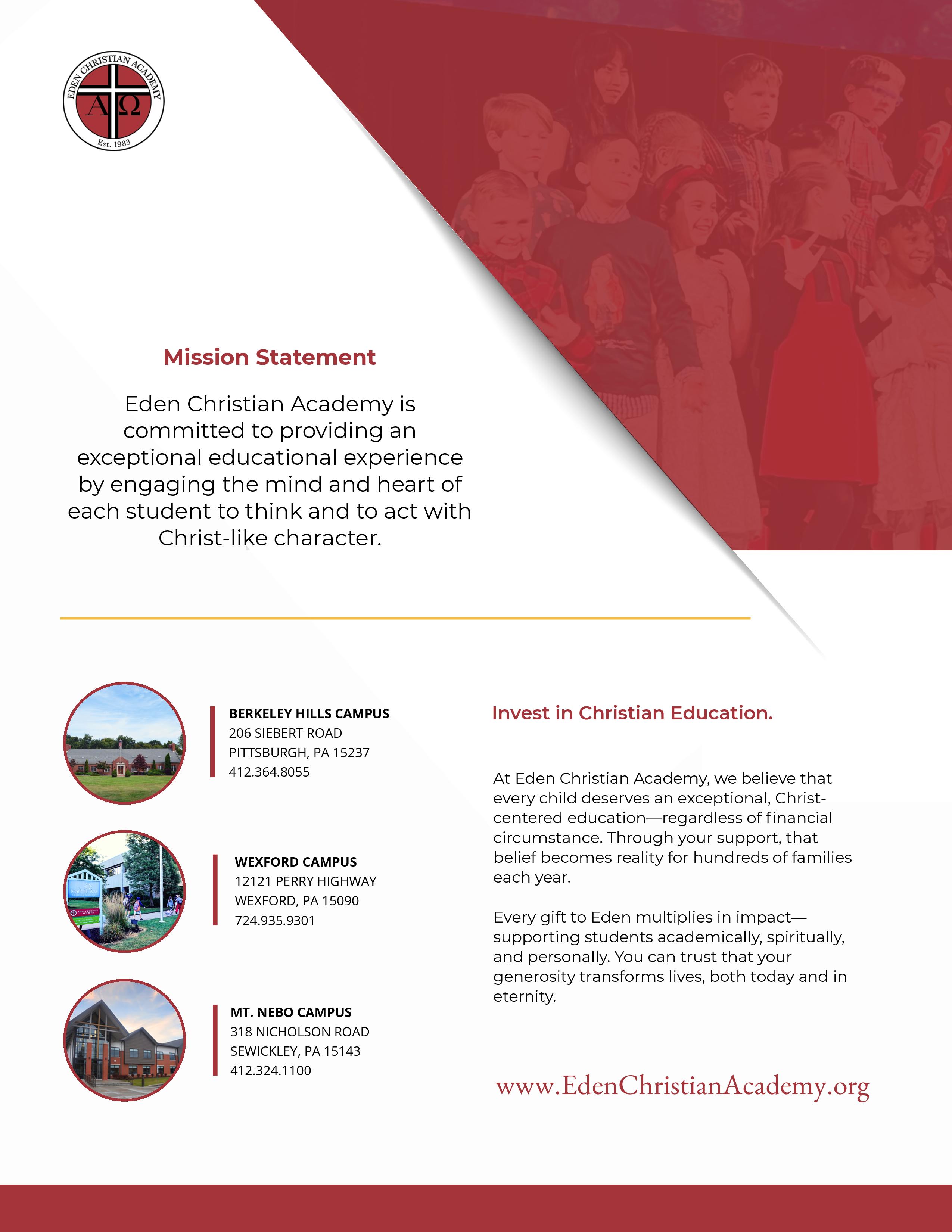 Quarterly Bulletin from the Office of Advancement and Development | Eden Christian Academy