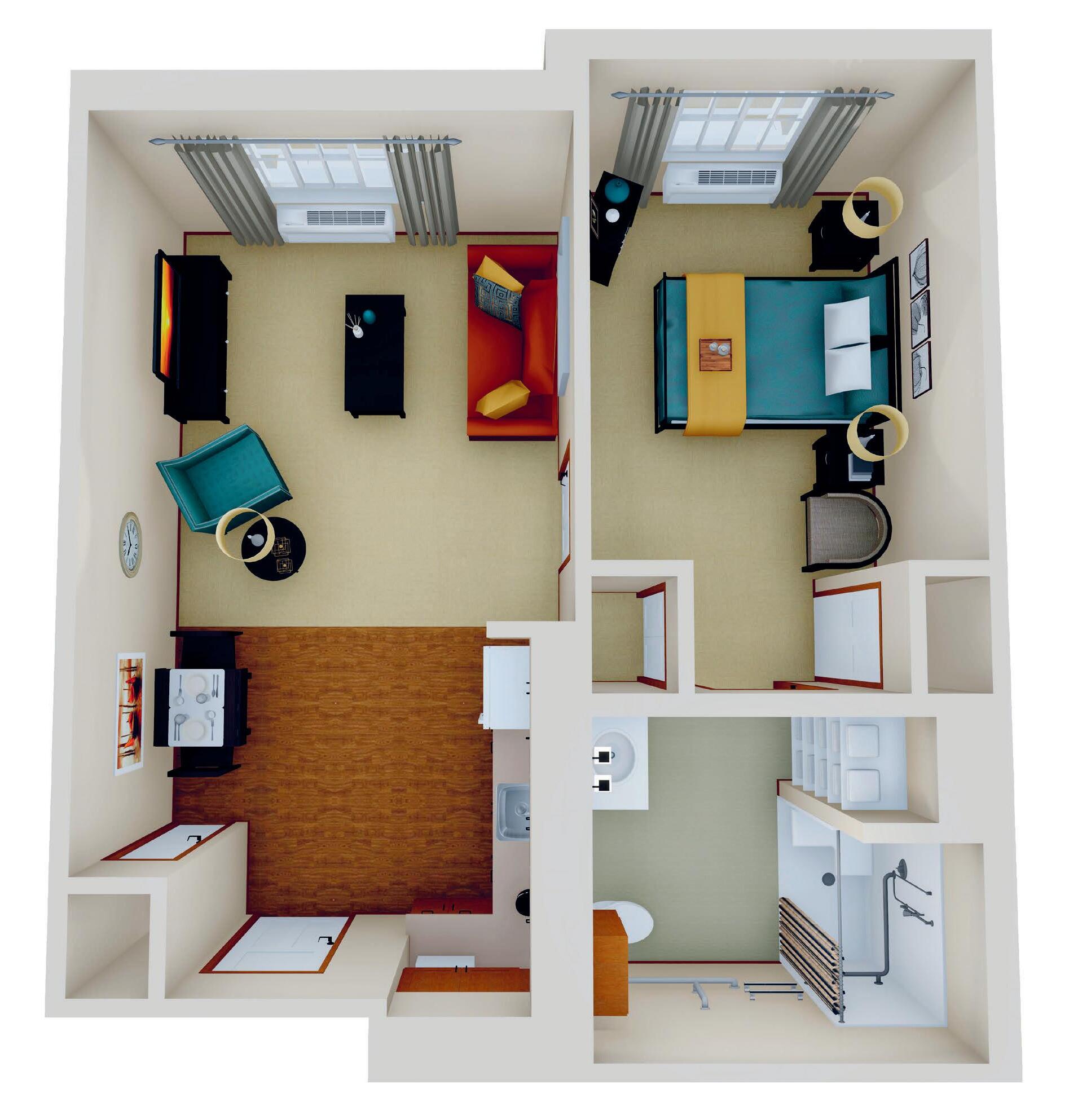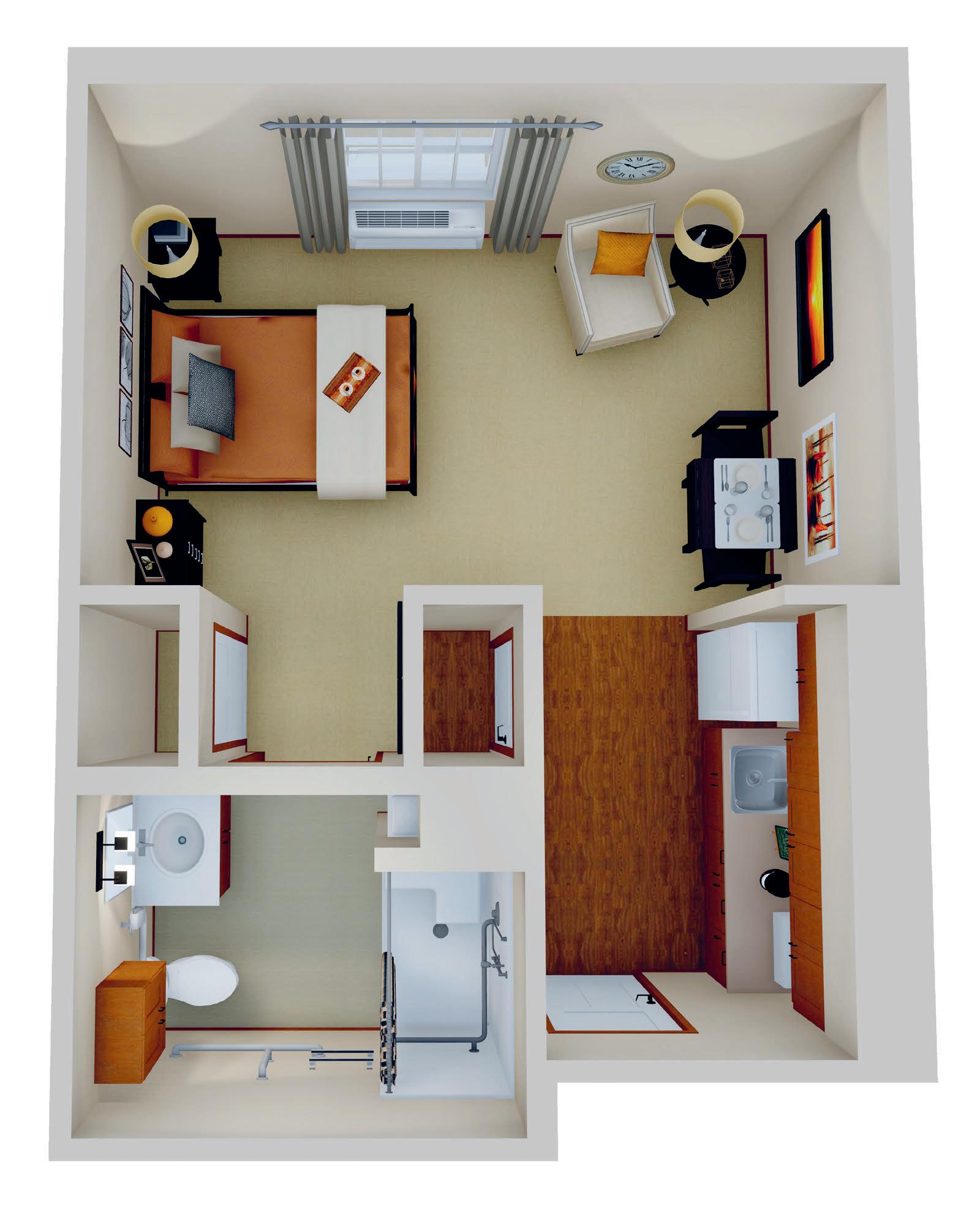 The Blossom Studio 350 sq ft $6,000 FLOORPLAN