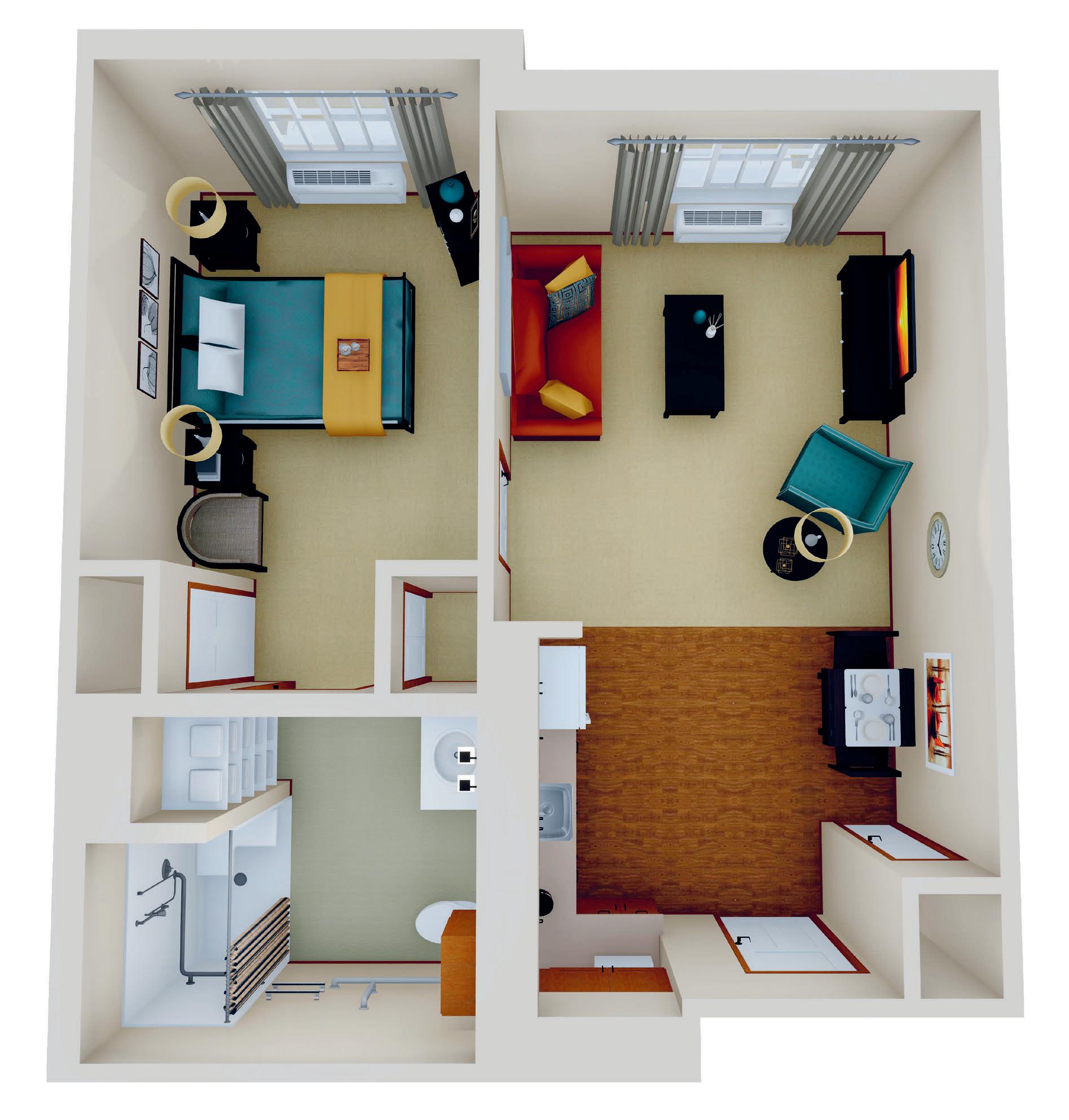 The assisted living base rate includes three daily meals, housekeeping, laundry, and a vibrant social/activity calendar.