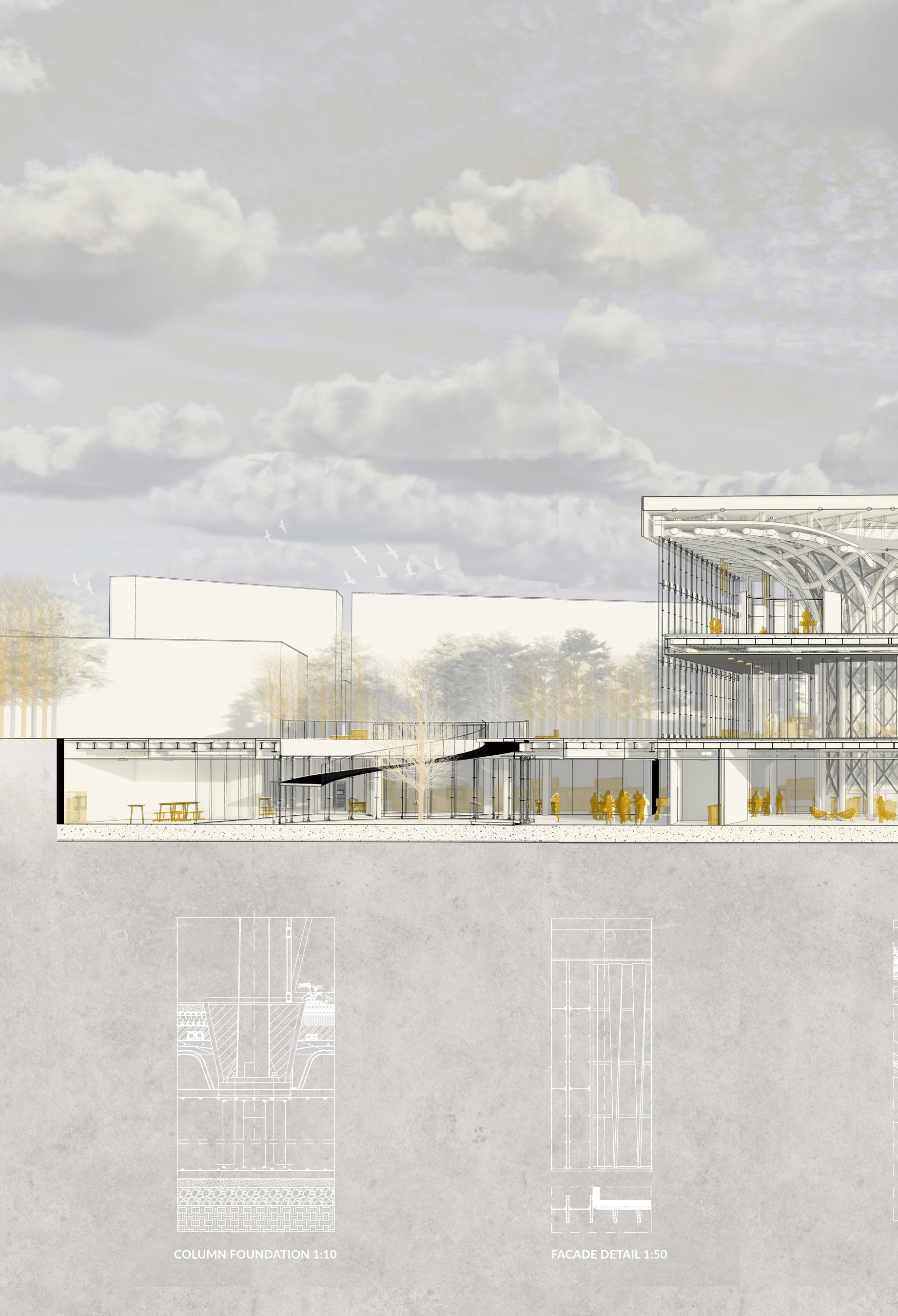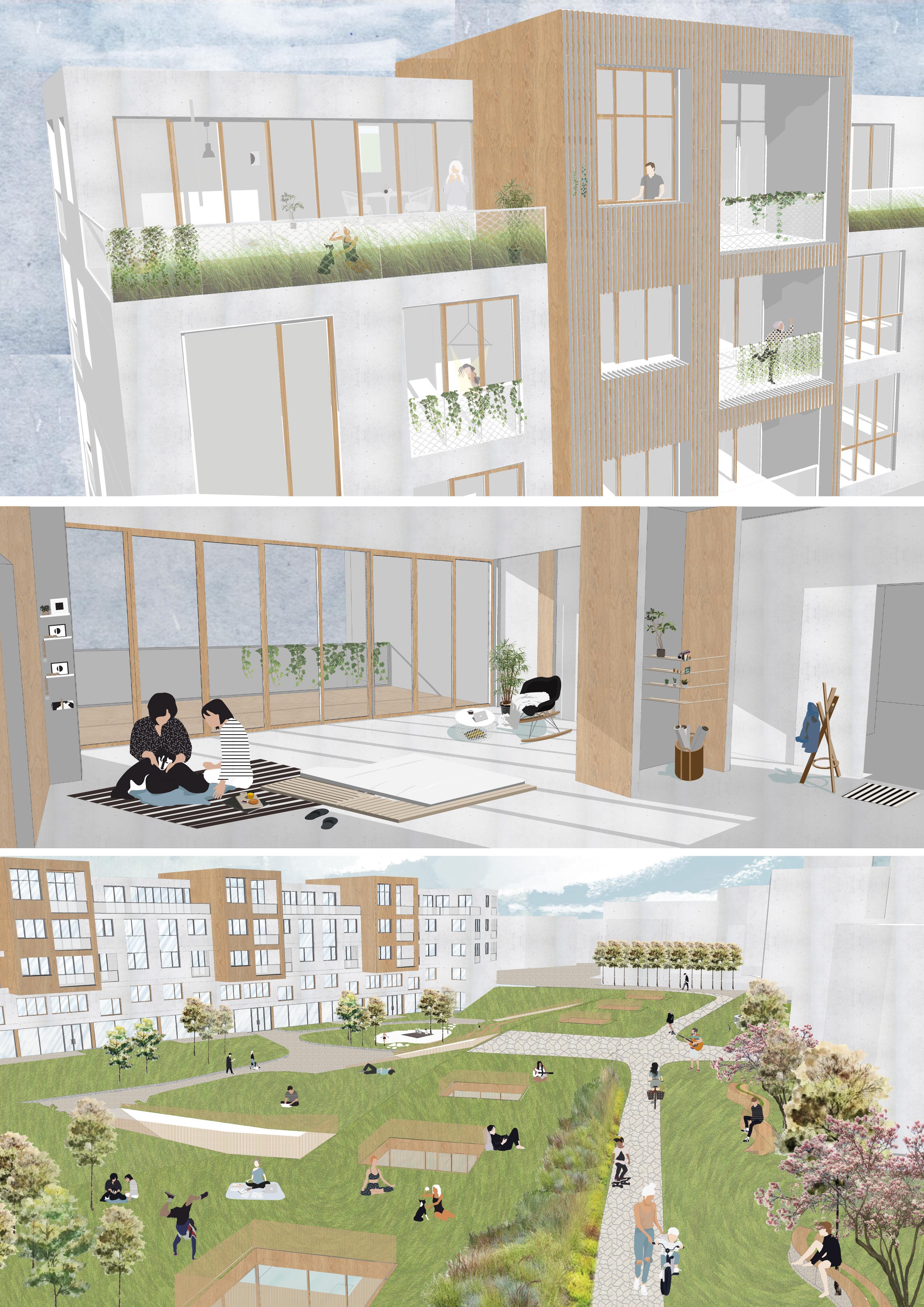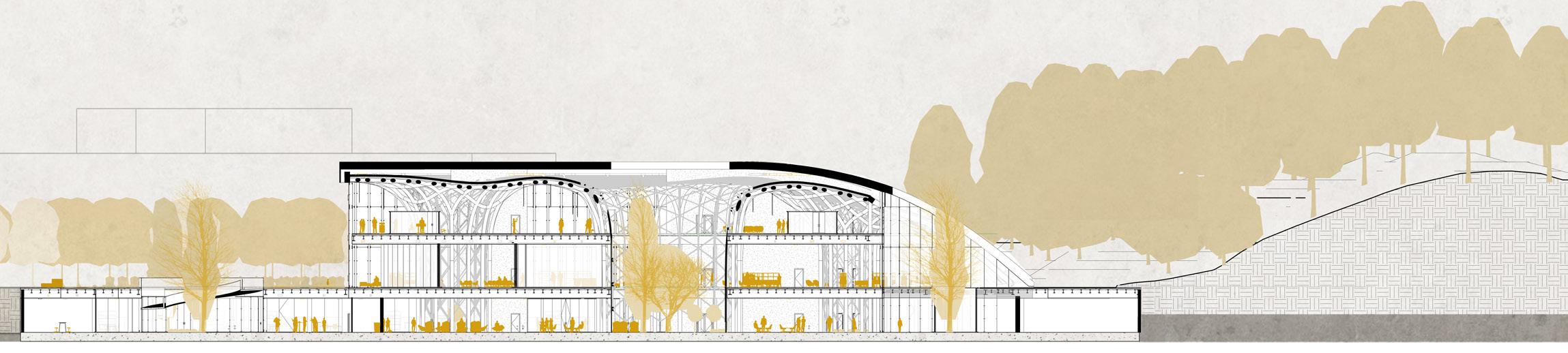 Located in the Lambrate district of Milan, Talpidea is a mixed-use complex overlooking an un derground market. With its diverse typologies, it combines both luxurious and affordable apartments. It is then adapted to a modern social approach by integrating different popu lations through the various commercial functions: market, coworking space, gym, artigenial shops and a park.