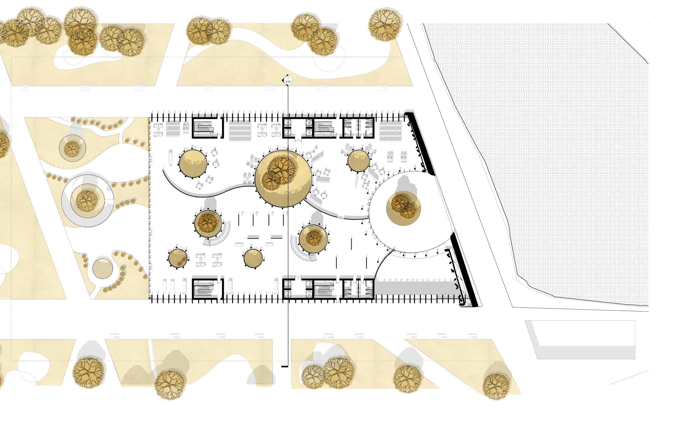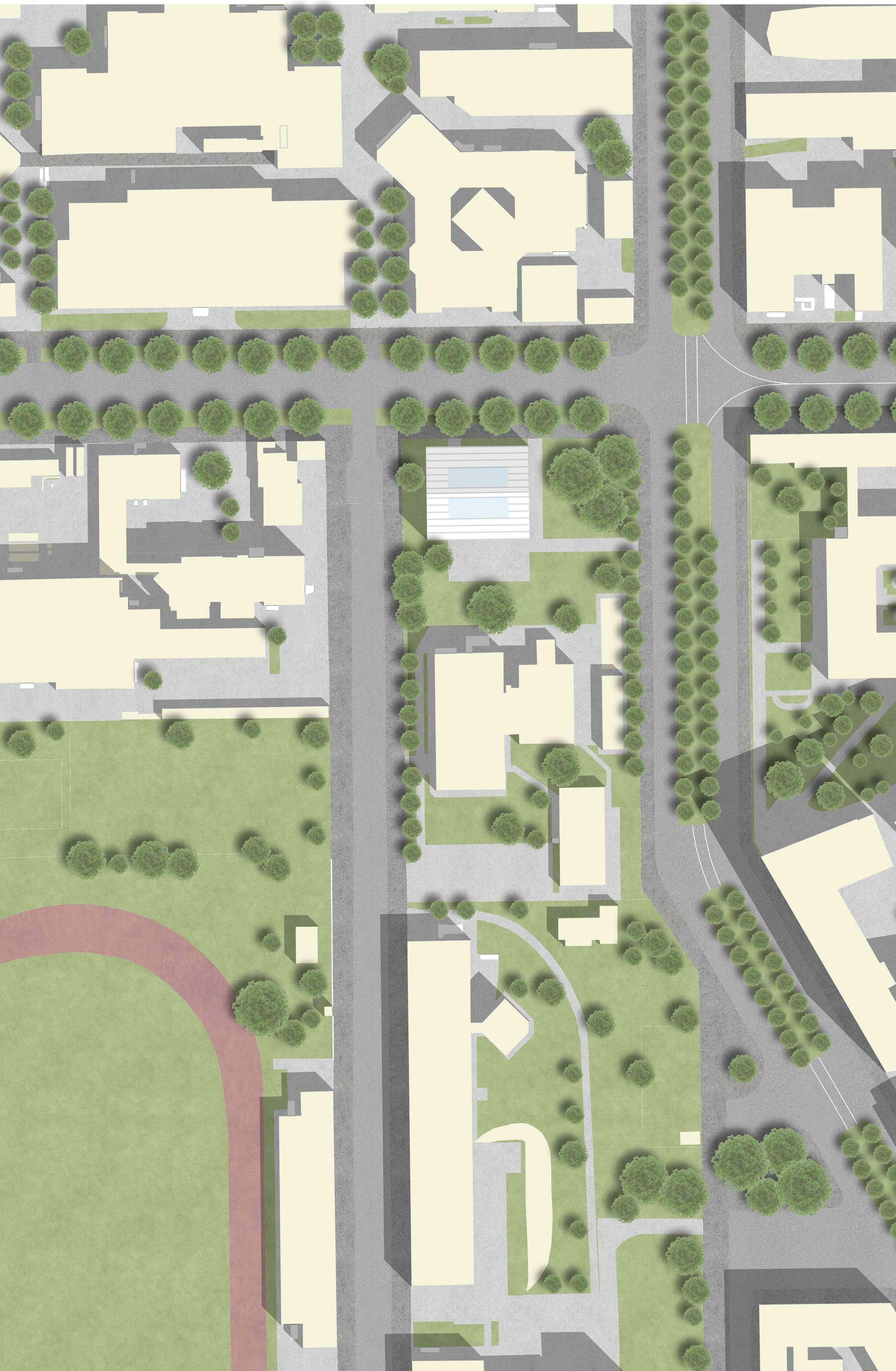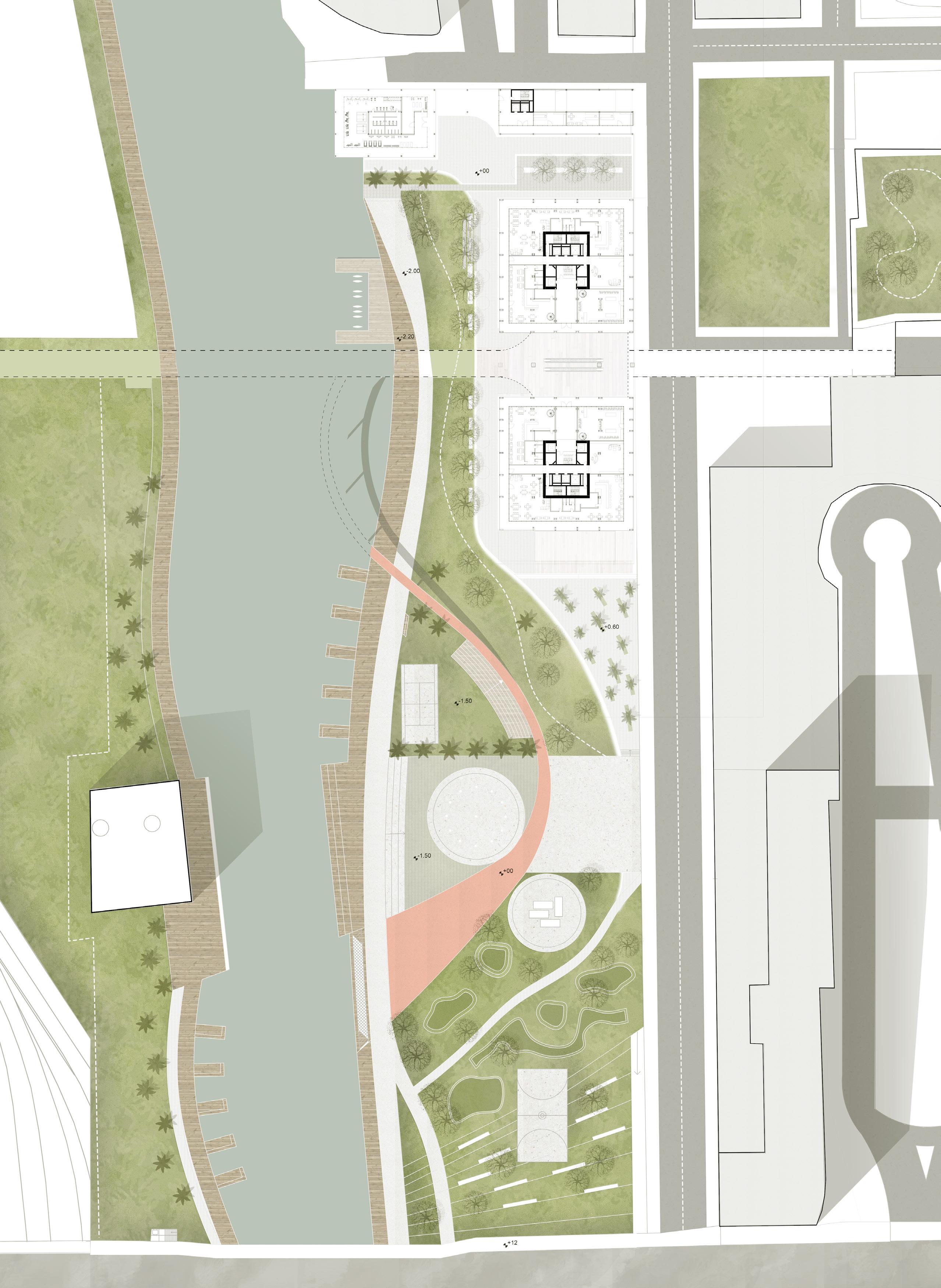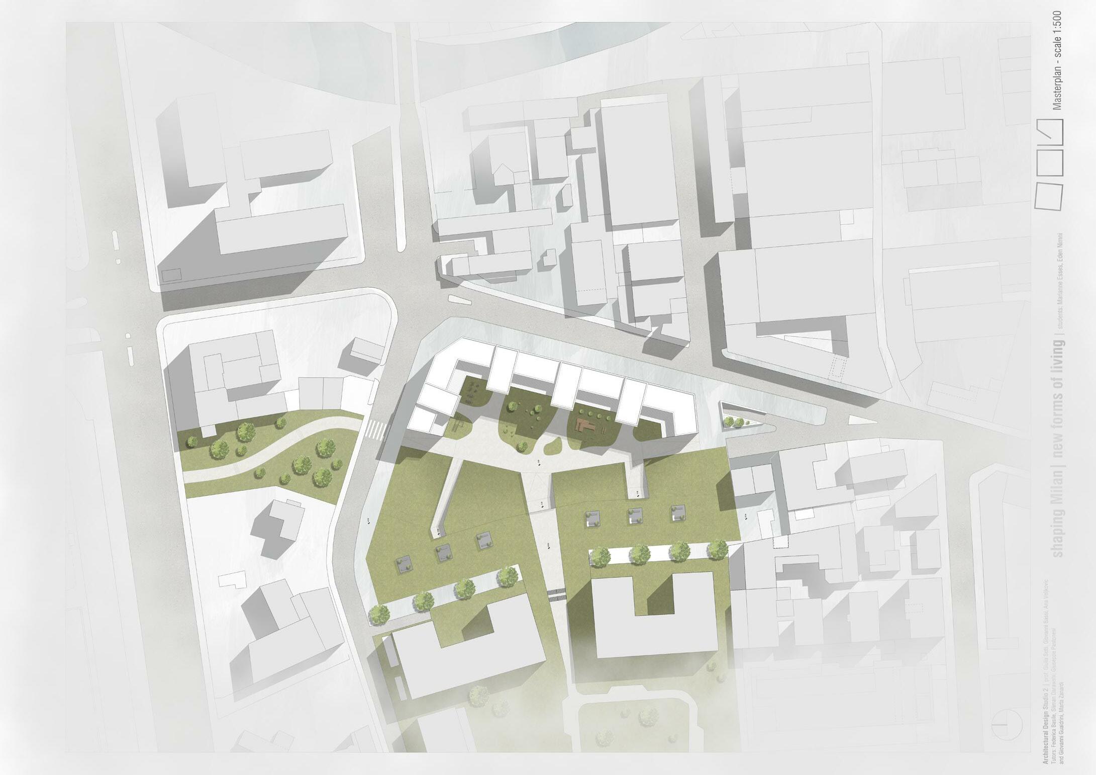 THE MASTERPLAN represents the visual connection to the main road , Rombon street, the arrangement of the new pathways and crossroads provide a safer access to the residential area from the main road and a more approachable atmosphere.