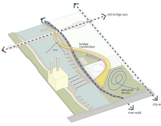 The design proposal has developed as a way to frame the views of Salemi provi ding a picturesque promenade along fields of terraced vineyards. Combining old and modern, using the unique and diverse topography of the site, defining a divi sion between private and public outdoor spaces.creating two main piazzas with diverse functions injected in public buildings which follow the traces of the ruins. Two residential buildings are located in the middle of the complex in between the two public piazzas assuring a high level of accessibility. They are connected by a common semi-private courtyard working as the social core of the community.