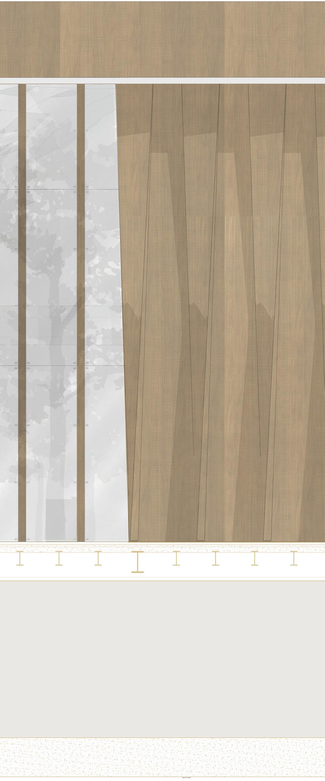 FACADE STRIGHT LOUvERS 1:100 I eLeRoo +13800 +6000 Groundfloor 0 16 95 120 500 335 86 285 70 100 550 300 200 100 127 125 500 335 86 11 72 15 51 124 330 505 86 8016 44 32 140 Louv1 T1 T2 215 1680 116 60 40 Crt.W1 Sub Geo1 Geo2 TP1 S.mem T.Insu V.bar Corr+scr W.mem S.lay Pav Scr Geo1 Geo2 S.mem T.insu Corr+scr Sp2 Sp1 Pav1 RF Corr+scr IPE 330 200 HEB 550 distance: 80 cm IPE 500 IPE 500 FACADE STRIGHT LOUVERS Detail 1:10 4 5 6 7 8 9 10 A B C D E F G H Roof Level +13800 1st Level +6000 A12 7 Groundfloor Level 0 1st Level +6000 Roof Level +13800 3 2 1 20 L9 7 L10 7 L10 7 A12-14 7 A15-17 8 Louv1 Crt.W1 Louv2 C.Alu Louv1 T1 T2 1680 116 60 40 1340 1340 1340 Crt.W1 Louv1 Louv2 W3 Sub Geo1 Geo2 TP1 S.mem T.Insu V.bar Corr+scr W.mem S.lay Sp2 Sp1 HEB 550 distance: 80 cm Cod. Technical Elem. Material Dim.s MATERIAŁ DESIGN FACADE ANALYSIS