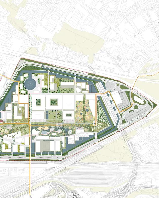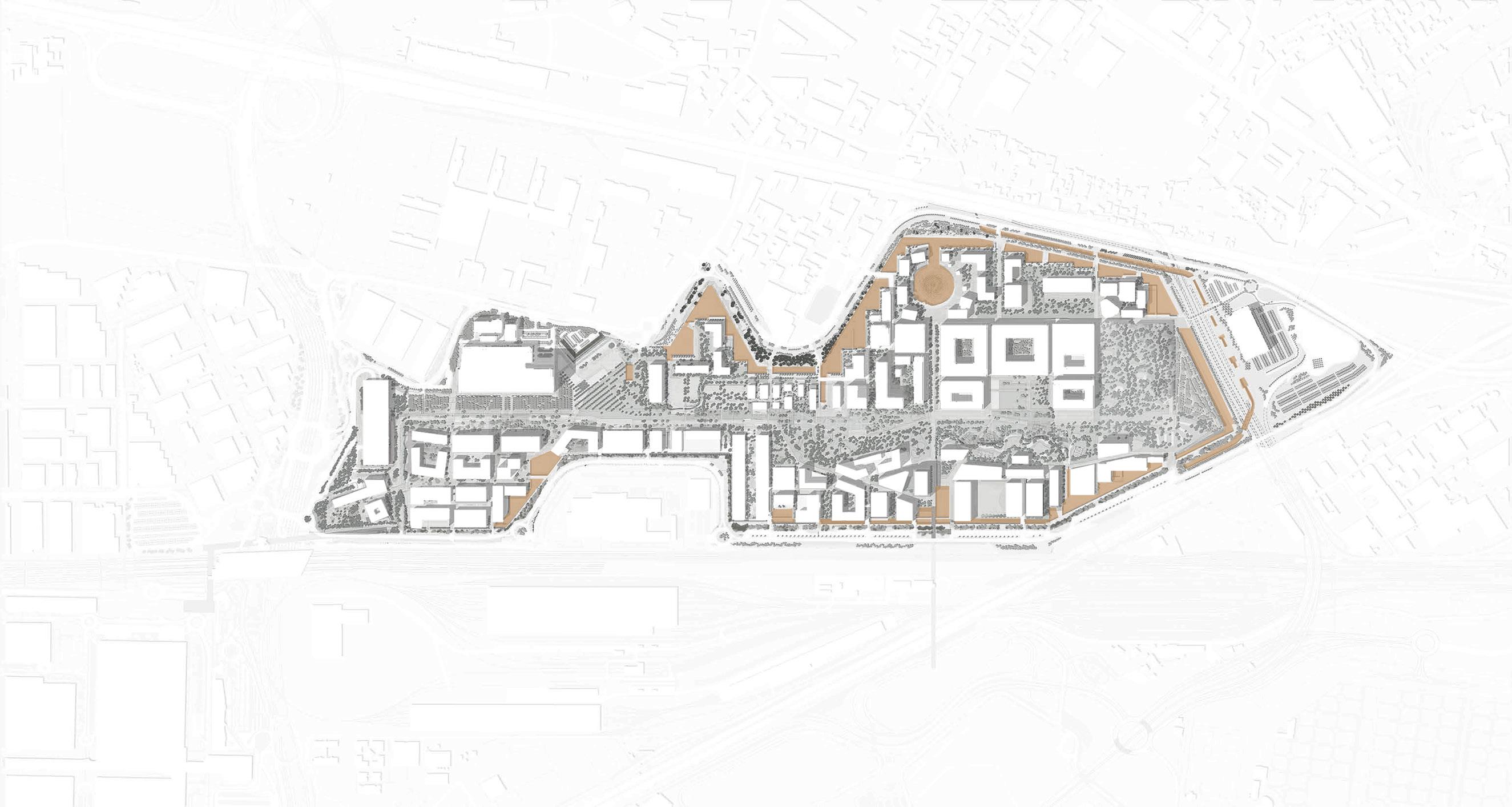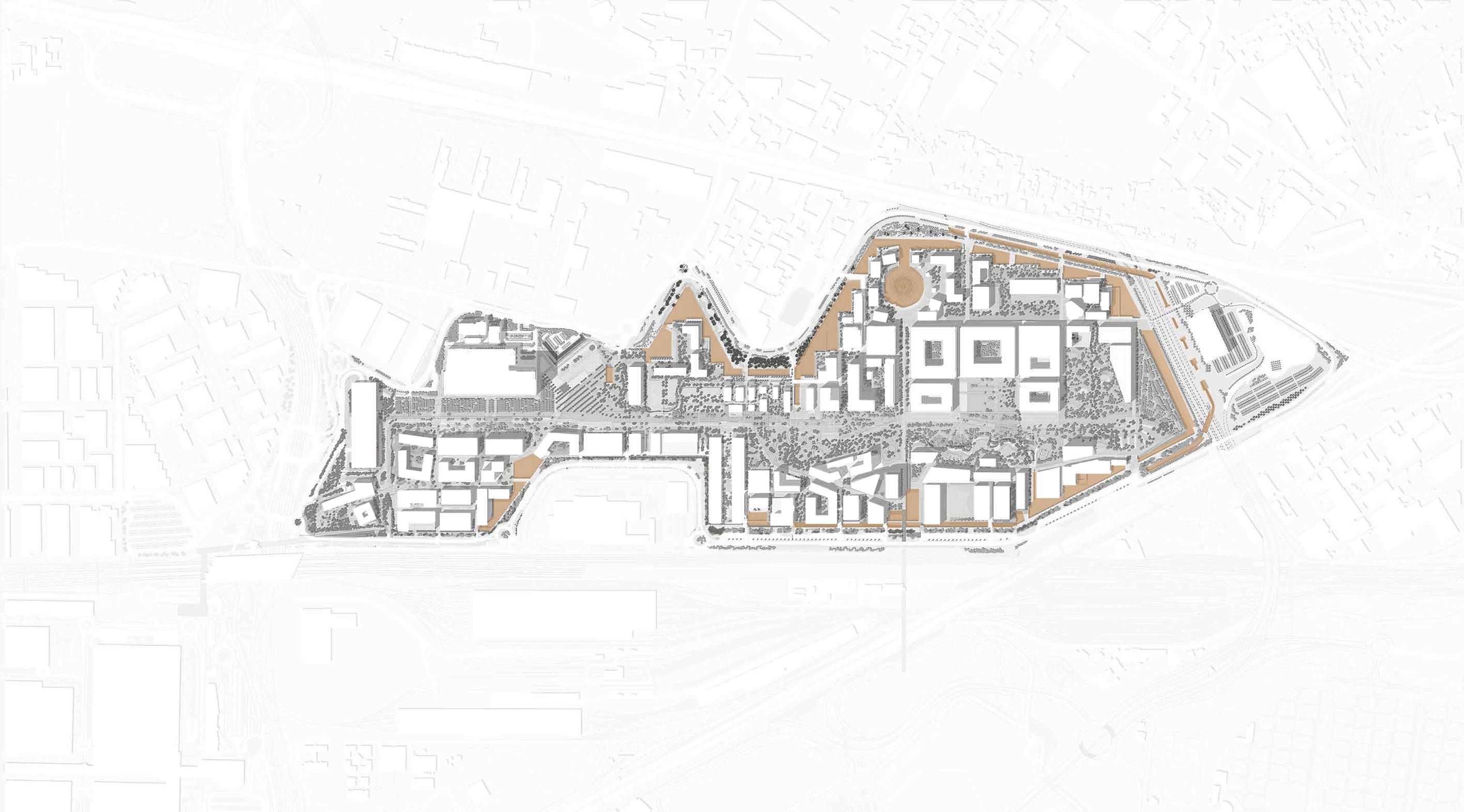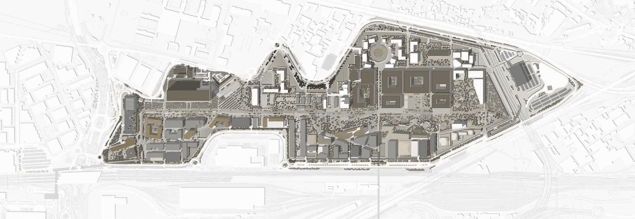 L’area di un milione di metri quadrati ospiterà le sedi di alcune eccellenze di interesse pubblico, oltre ad attività di ricerca, formazione e impresa, servizi e commercio, complessi residenziali, spazi aperti e grandi parchi, agglutinati lungo l’asse longitudinale principale da ovest a est, il Decumano.