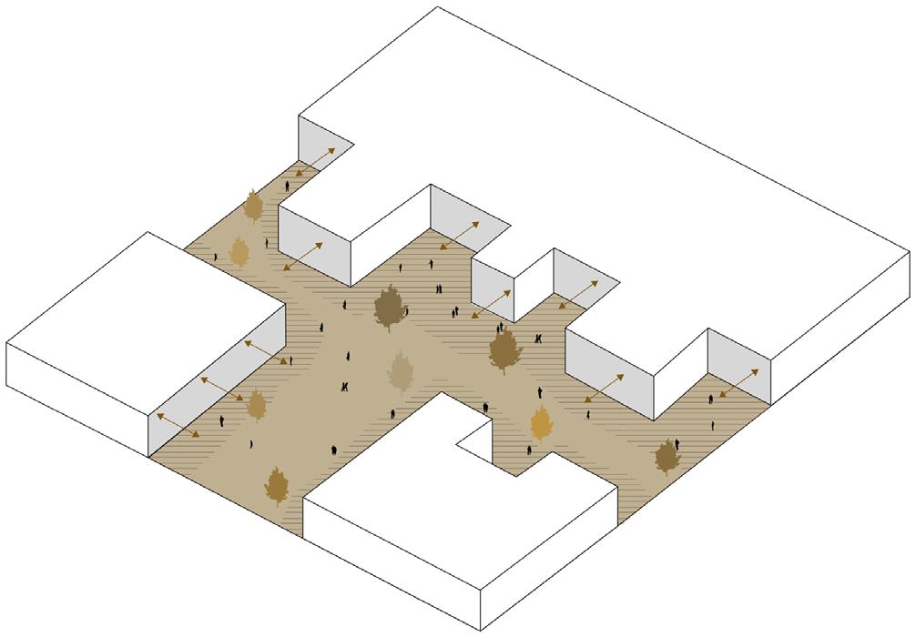 The Arco della pace/parco sempione zone, Navigilo canals, Corso Buenos aires, the center of Milan’s historical district and City-life zones can all be used to identify the city’s urban fabric. The overlap of both city fabrics allows for a comparison of past and contemporary urban evolution. The comprehension of MIND’s masterplan project’s growth, logic, and proportions is shown by overlaying the MIND district’s island-like design shape with the described urban fabrics of Milan.