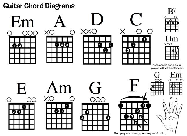 The songbook is designed to help you learn guitar and ukulele, so as you go the songs will have more new chords. Start with just Em and A and add from there! Enjoy!