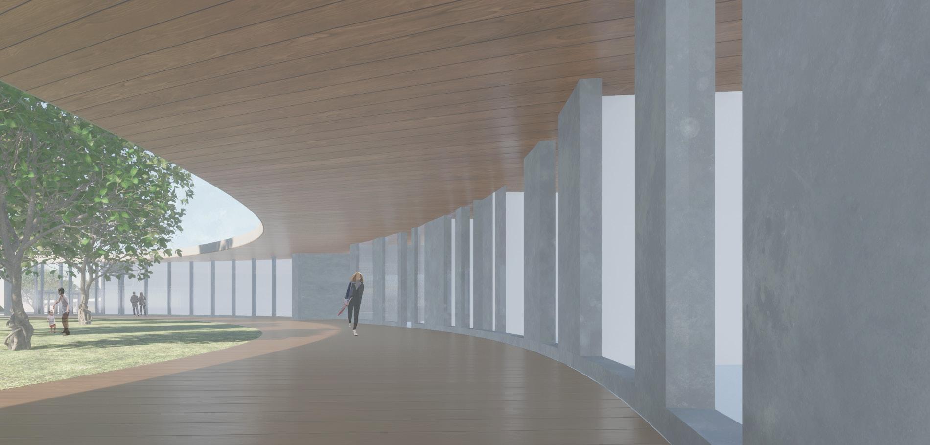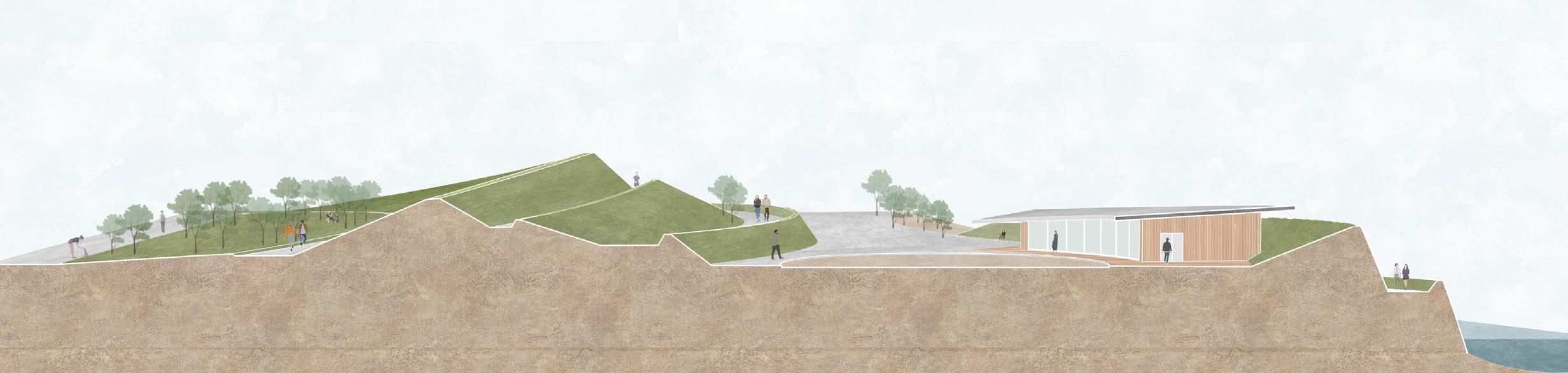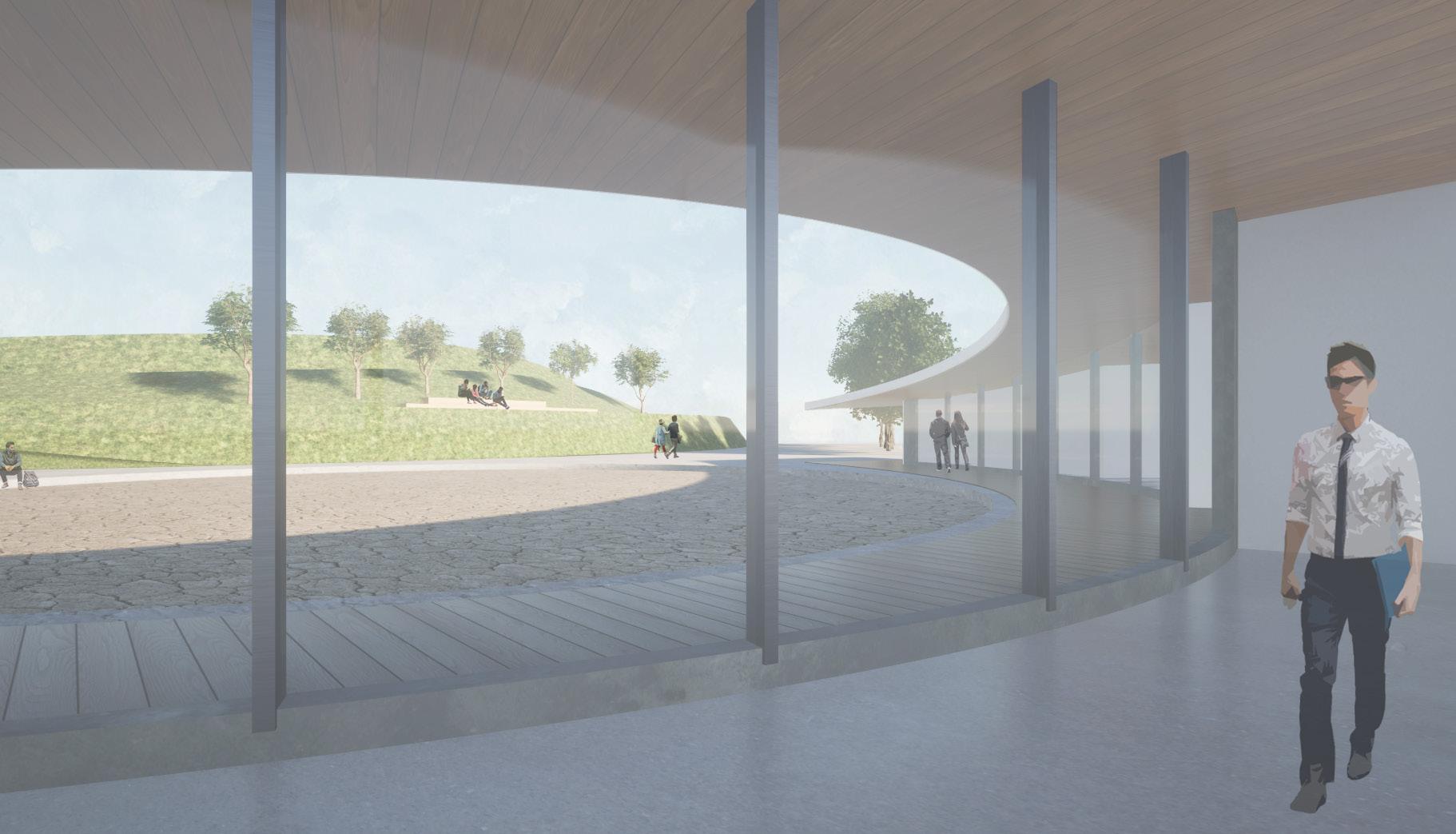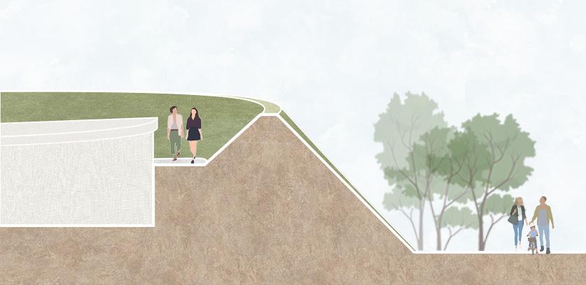 The mounds, functioning as active circulation zones, facilitate movement while also offering spaces for contemplation. Their design transcends mere barriers, creating inviting park-like areas for community gatherings and rest, infusing vitality and a sense of belonging into the site.