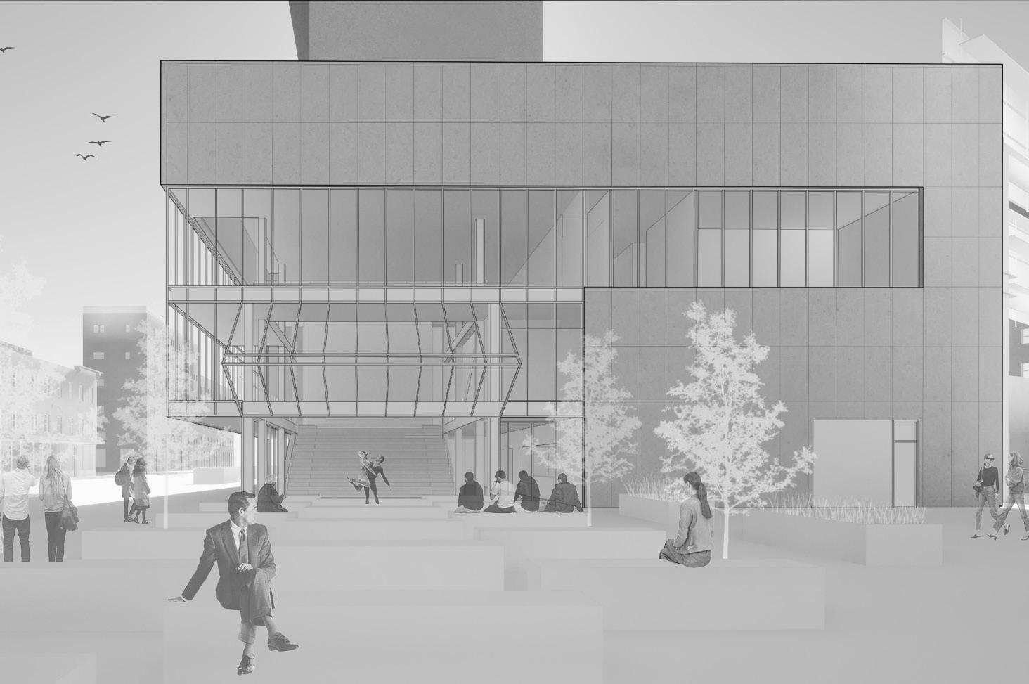 The concept of ‘reveal’ influences the composition, the dynamic interplay of mass and void, and the facade. By dispersing gathering spaces strategically throughout the structure, it encourages fluid movement and engagement, fostering an environment that beckons exploration and community connection. This idea of ‘reveal’ finds expression in compression and release, culminating in the grand stair that connects the various theaters and gathering spaces.