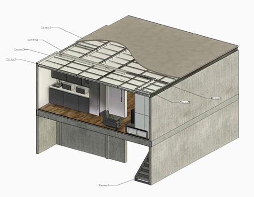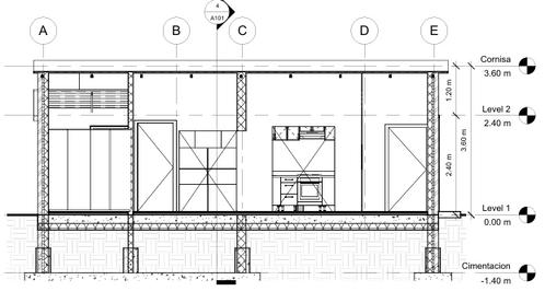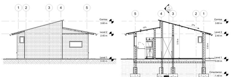 The structural design was developed from the foundation, incorporating three types of footings and tie beams. The concept of the house is that of a compact country home, suitableforruralorvacationsettings.Theroofstructureis composed of metallic braces using the steel frame system, withagableroofconfiguration.