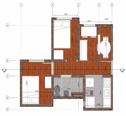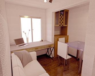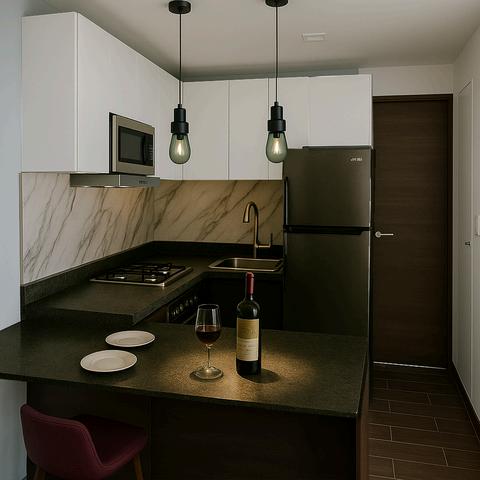 Therenovationdesignfora30m²apartmentinBogotáhas been meticulously developed, incorporating high-quality whitefinishes,customkitchenandroomsfurnishings.The primary focus of the proposal is to create comfortable and inviting spaces that prioritize both functionality and aestheticappeal.Strategicuseoflightingandlight-colored toneshasbeenemployedtofosterasenseofopennessand spaciousness, making the apartment feel larger and more welcoming.