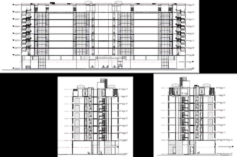 The building design incorporates an elevator, ensuring accessibilityandcomfortforallresidents.Thegroundfloor has a commercial area with a double-height ceiling, fostering a dynamic commercial environment that encourages interaction and activity, the top floor is a walkableterracewithBBQandgardensforresidents.