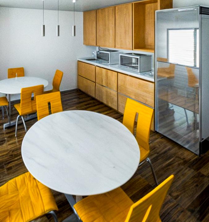 MoreraOfficeisameticulouslydesigned94m²spaceaimed at optimizing functionality and transparency. The layout encompasses two main configurations: an open area with two desks accommodating four people each, fostering dynamiccollaboration,andthreeenclosedofficeswithglass wallsforprivacywhilepreservingasenseofopennessand natural light. Additionally, the office features a spacious cafeteria for eight people, facilitating breaks and team socialization,alongsidealoungeequippedwithatelevision forrelaxationandinformalmeetings.Theoffice'sstructural systemincludesasteelframeforthestaircase,columnsand ceiling and drywall partitions for interior walls, ensuring bothflexibilityanddurabilityintheworkspacedesign.