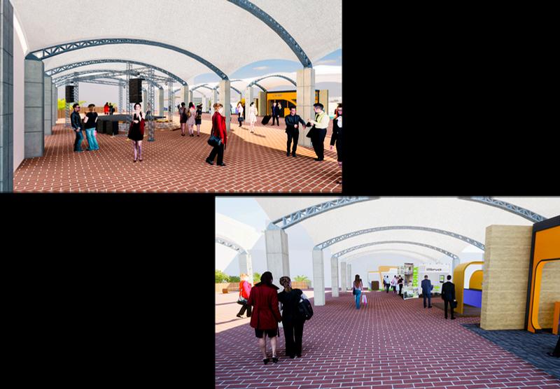 The pavilion's expansive spaces are ideal for various commercial, recreational, and exhibition activities within its galleries. Its open-plan design not only provides ample room fordiversefunctionsbutalsoallowsforabundantnaturallight and ventilation, creating a comfortable and inviting environment.
