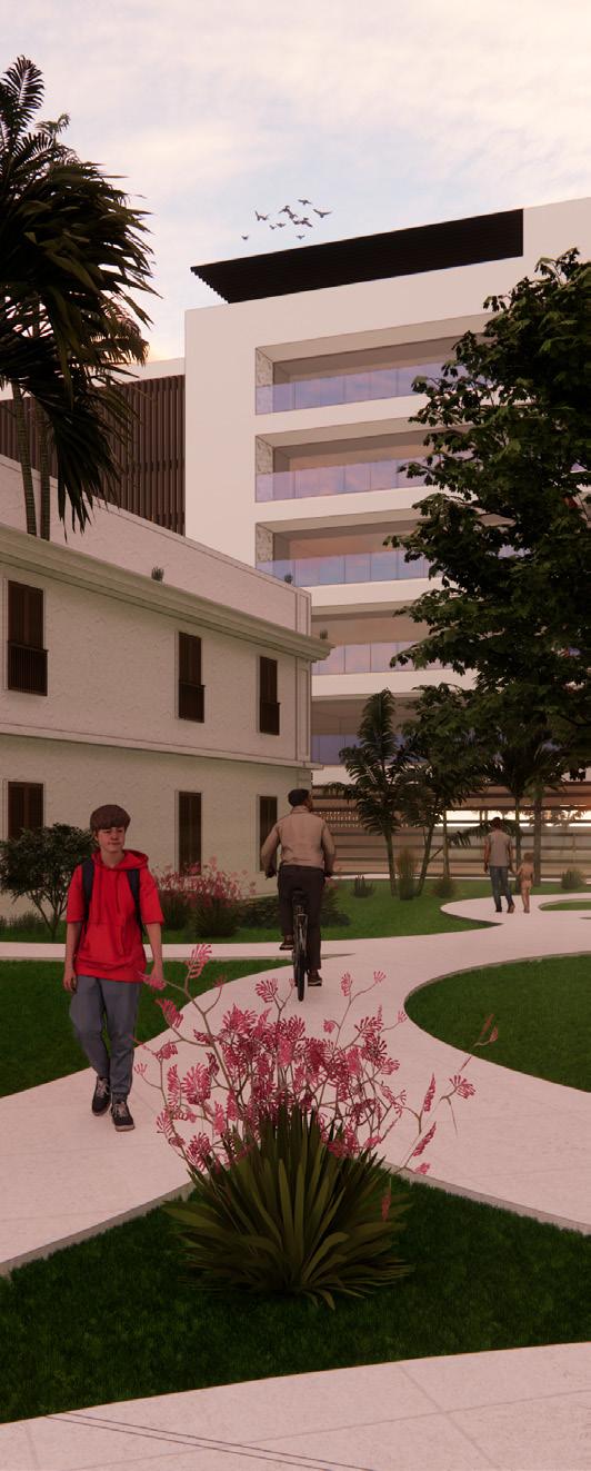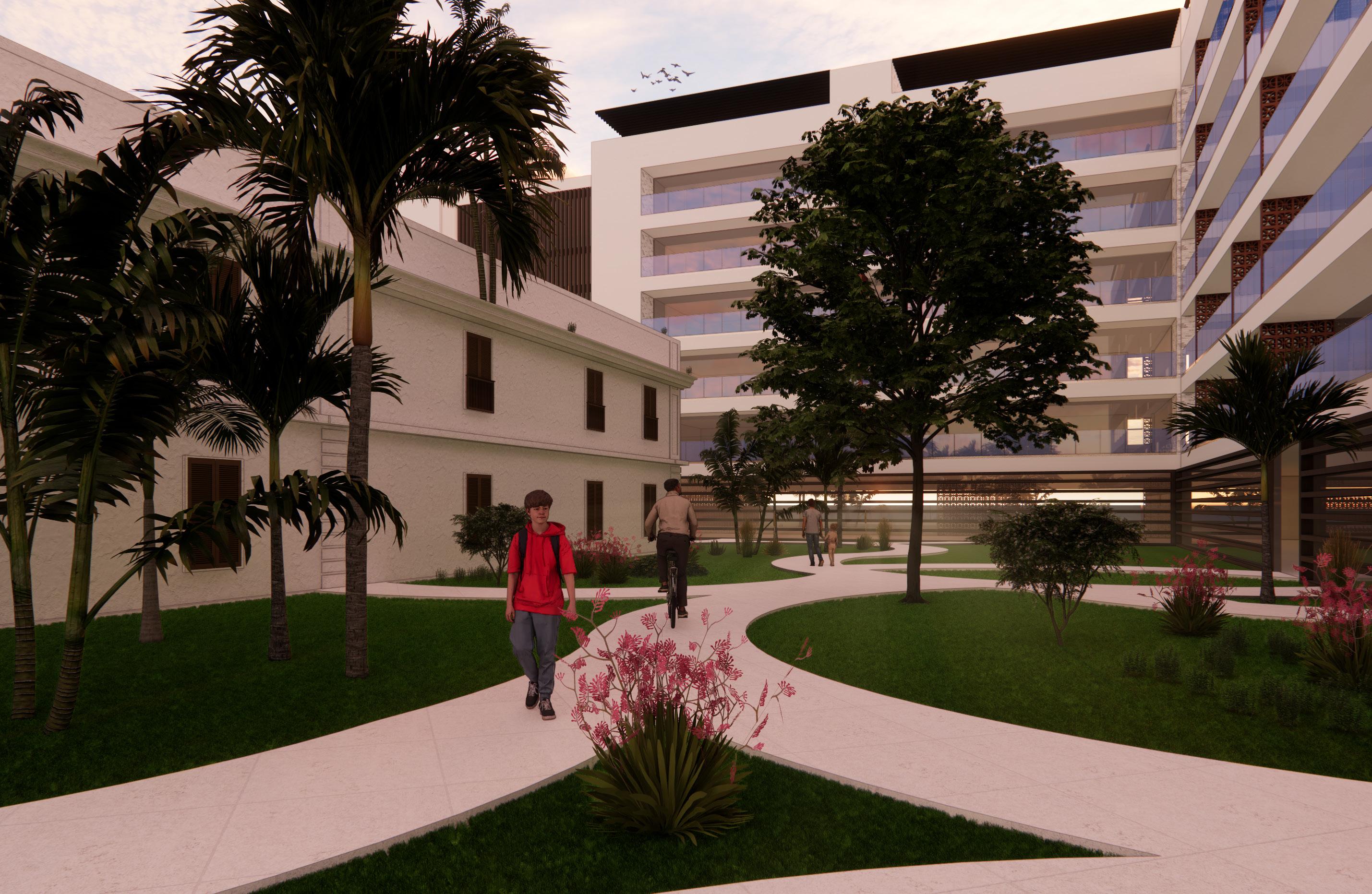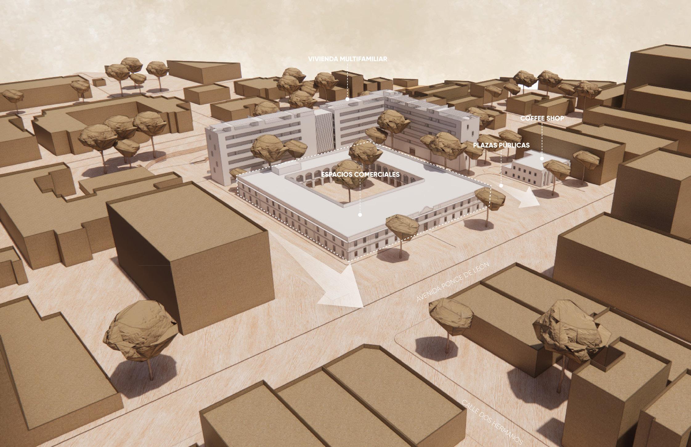 A multifamily residence that showcases the vibrant artistic culture and rich history of Santurce is proposed. The apartment complex establishes a dialogue with the historical building by embracing it and creating a contrast between new and old. Open and green spaces provide the opportunity of connecting the building with its surroundings and encourages social interactions between the residents.