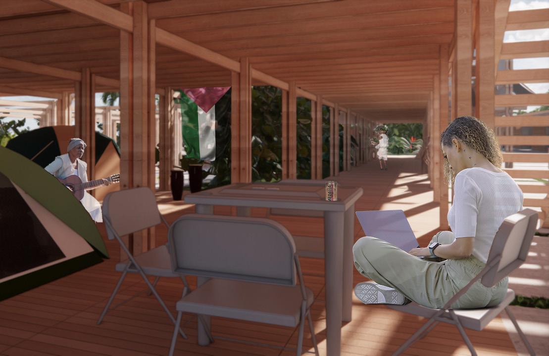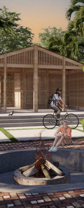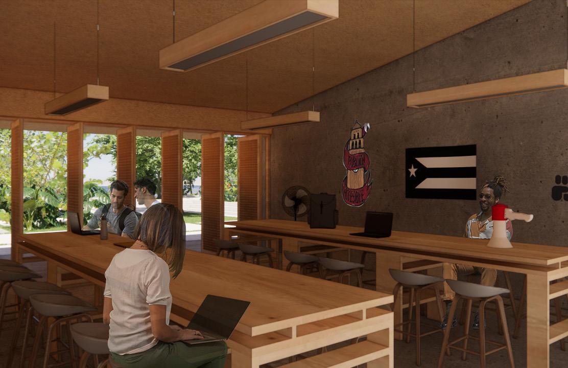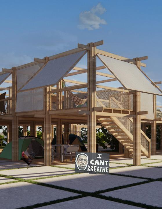 The Heterotopic Camp, located in Escambrón, Puerto Rico, is a multisectorial headquater that functions as a democratic and collaborative space for several activist groups. The design aims to develop a space that encourages the participation of the communitiy in acts of political and social resistance. The complex includes an agora, meeting spaces, camping areas for activists, rage rooms, a community garden, a social kitchen, a surf shop and several docks.