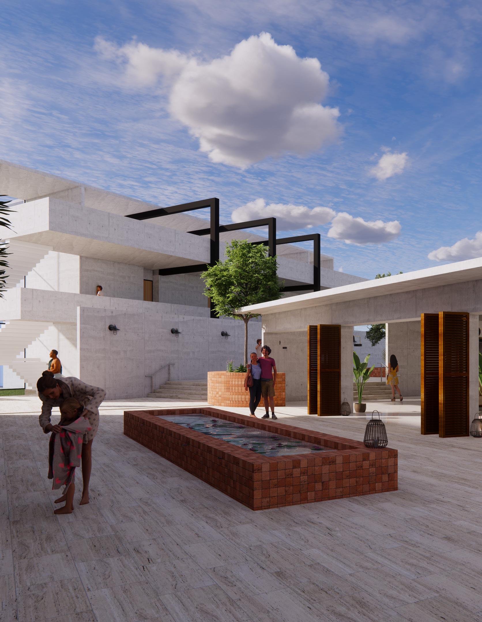The 12-bedroom hotel, located in the hills of Culebra, Puerto Rico integrates the natural setting to create a space of relaxation and contemplation. The creation of courtyards and open spaces allow the users to connect with their surroundings, while maximizing the views from the top of the hill. Solar panels and ponds that collect rainwater are proposed to create a self-sustaining project.