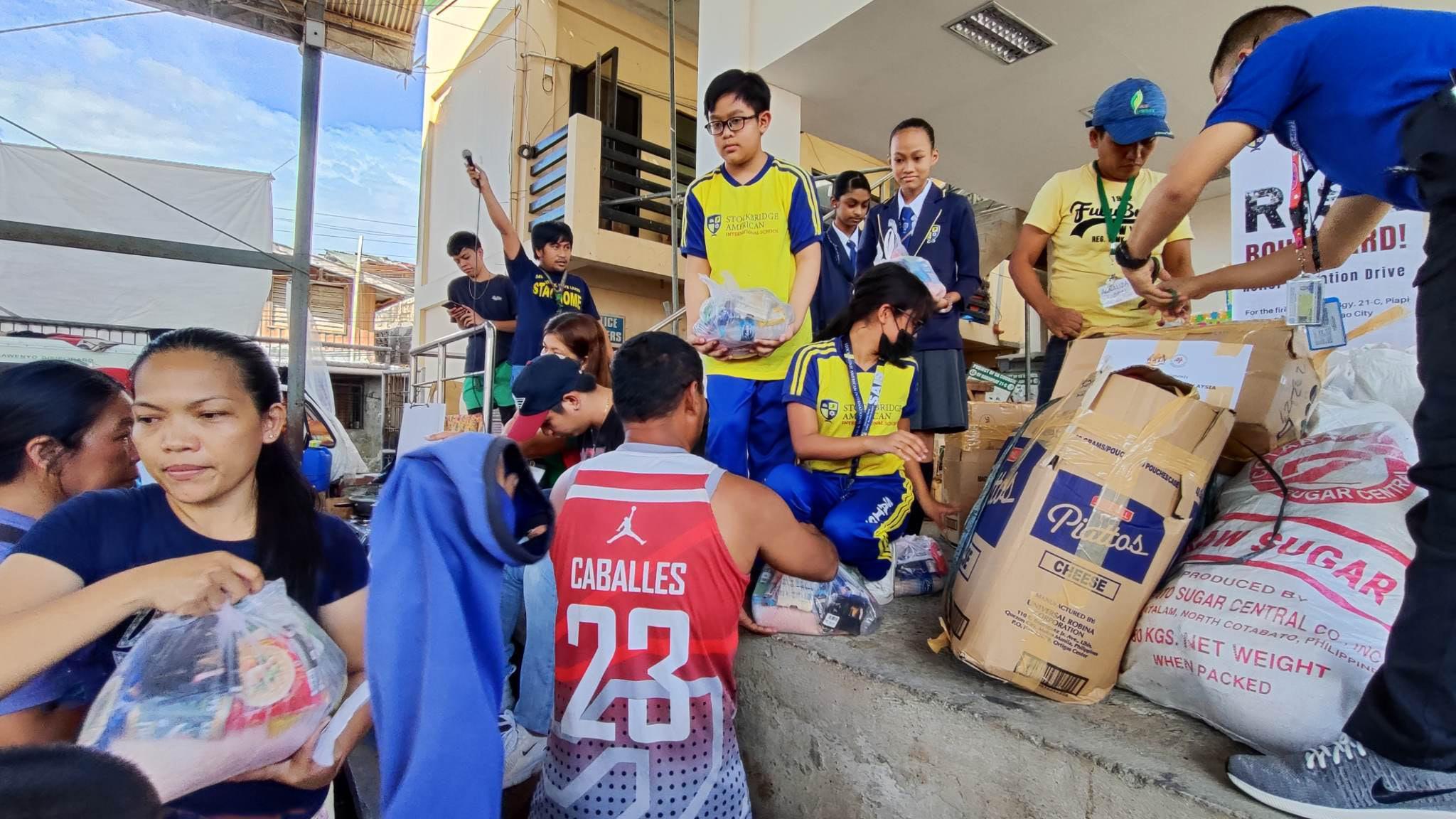 The students distributed rice, canned goods, bottled water, noodles, toiletries, biscuits, and used clothing.