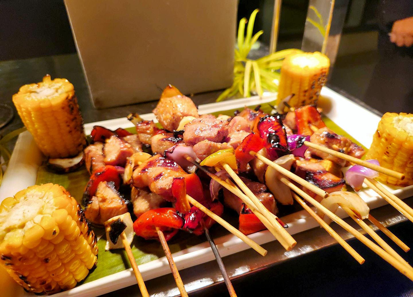 Apart from the unlimited grilled meat and seafood, don’t miss stopping by the street food station, salad bar, and dessert table.