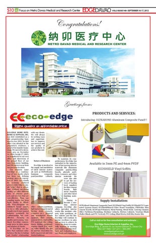 Greetings from: PRODUCTS AND SERVICES: Introducing: ULTRABOND Aluminum Composite Panel!!! ECO-EDGE HOME INTERIORS & SUPPLIES, INC. was first established as a sole proprietorship business in year 2002. Its first office was situated in the proprietor’s residence, a proof of its humble beginnings. We moved to downtown area on December 16, 2004. On July 27, 2009, we transferred to our own office and showroom at the ground floor of our own four-storey building, just 300 meters away from our previous location. Our business name Eco-Edge is a combination of two words which has been our defining strategy since its conception in 2002. Eco stands for economy (reduced prices) while Edge is simply “edge”, that is, advantage. Without sacrificing quality, we offer different lines of interior products and services that are cost-effective. Thus, our standing motto has been Right Quality at Affordable Price.Alongside established brand names, we try to offer alternative brands which have passed industry standards for craftsmanship but costeffective. Focusing on quality and economy combined, Eco-Edge continuously grew in sales, assets and number of clients. At Eco-Edge, we believe that customer satisfaction is the key to lasting and fruitful relationship