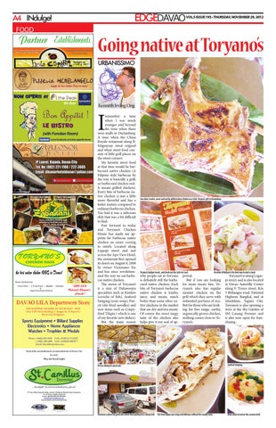 remember a time when i was much younger and beyond the time when there were malls in Durianburg. A time when the China Royale restaurant along R. Magsaysay street reigned and when street food consists of little grill places on the street corners. My favorite street food at that time would be barbecued native chicken (A Filipino style barbecue by the way is basically a grill, so barbecued chicken really means grilled chicken). every bite of barbecue native chicken is just a little more flavorful and has a better texture compared to ordinary barbecue chicken. too bad it was a delicious dish that was a bit difficult to find. Fast forward to today and toryano’s Chicken House has made my appetite for barbecue native chicken an easier craving to satisfy. Located along Legaspi street and just across the Apo View Hotel, the restaurant first opened its doors on August 8, 2008 by owner Victoriano Yee and has since revolutionized the way we eat barbecue native chicken. The menu of toryano’s is a mix of Dabawenyo specialties such as Kinilaw (ceviche of fish), Seafood Sinigang (sour soup), Pancit (stir-fried noodles) and new items such as Crispyfried tilapia ( which is one of my favorite new dishes). But the main reason
