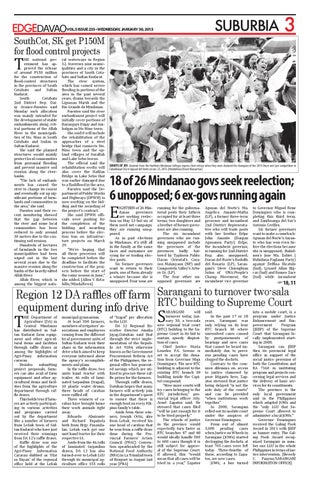 EDGEDAVAOVOL.5 ISSUE 235 •WEDNESDAY, JANUARY 30, 2013 SouthCot, SK get P150M for flood control projects