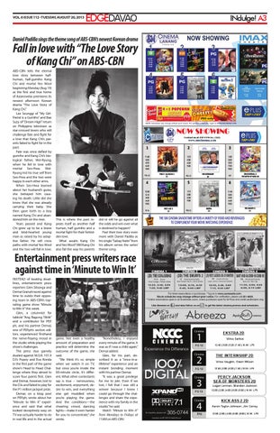 Entertainment press writers race against time in ‘Minute to Win It’ InsTEAD of beating deadlines, entertainment press reporters Glen sibonga and Demai Granali raced against time to outdo their opposing team in ABs-CBn’s toprating game show “Minute to Win It” this week. Glen, a columnist for tabloid “Ang Bagong Tiktik” and a contributor for PEP. ph, and his partner Demai, one of PEP.ph’s section editors, experienced firsthand the nerve-fraying mood in the studio while playing the show’s challenges. The press duo gamely dueled against M.O.R. 101.9 DJ’s Popoy and Eva Ronda in the first part of the game show’s Head to Head Challenge where they aimed to score four points first. Glen and Demai, however, lost to the DJs and failed to play for the P1 million jackpot prize. Demai, on a blog post on PEP.ph, wrote about her ”Minute to Win It” experience and said that what looked deceptively easy on TV was actually harder to do in real life and in the actual