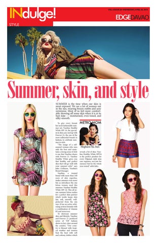 Summer, skin, and style Summer is the time when our skin is most exposed. We see a lot of women out in the sun, wearing breezy outfits and sexy swimwear. most of us feel more comfortable showing off some skin when it is at its best state --- moisturized, even-toned, and silky-smooth.