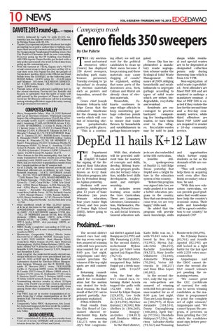 ing effort, we will not wait for the political candidates to clean up their mess because it keeps raining and these materials may cause clogging of canals,” he explained, adding that some parts of the downtown area, toril, Calinan and Mintal are already clean of election materials. Meanwhile, felizarta continues to urge village officials to keep monitoring garbage collection points in their jurisdiction to ensure that waste thrown by households and establishments in garbage bins are segre-