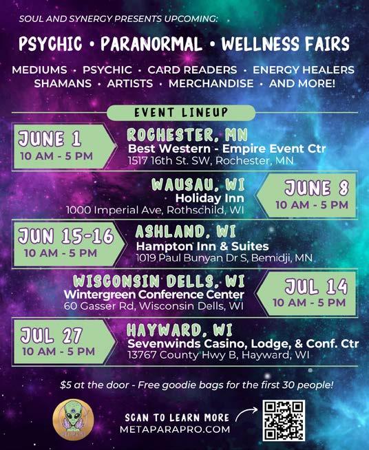 Join us for a day of healing, with vendors that include readers, mediums, psychics, energy healers, shamans, and reflexology. Find crystals, candles, jewelry, incense, and more. $5 entry fee. To become a vendor vontact Terry Flick at 715-598-7002 and soulandsynergy@gmail.com. See full fair schedule at metaparapro.com