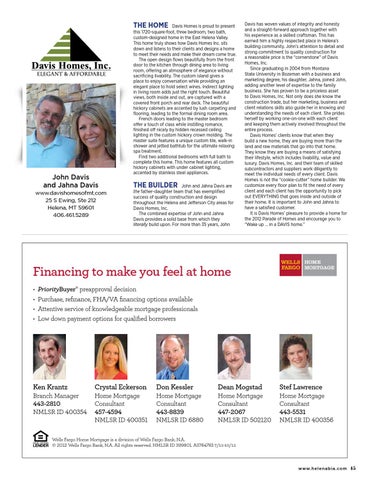 John Davis and Jahna Davis www.davishomesofmt.com 25 S Ewing, Ste 212 Helena, MT 59601 406.461.5289