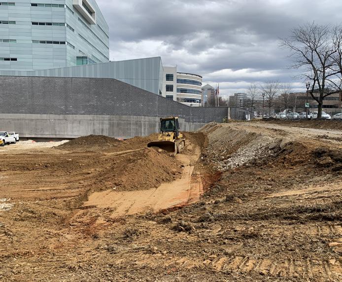 Strittmatter’s work was crucial to preparing the building’s foundation. First, they imported dirt to build a bench to allow the support of excavation team to sit at street grade to install piles to hold back the dirt from excavation (top photo). Then, they removed roughly 21,000 cubic yards of dirt from the existing site to get to the subgrade of the new building. Once the new culvert was complete, they demolished the existing culvert that ran under the old building (bottom photo). Strittmatter will be back on site later to work on sidewalks and hardscapes.