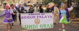 The Krewe of Bogue Falaya continued their long-standing Mardi Gras tradition by meeting their Grand Marshal at the Bogue Falaya Park boat launch, followed by a lively second line through downtown Covington.
