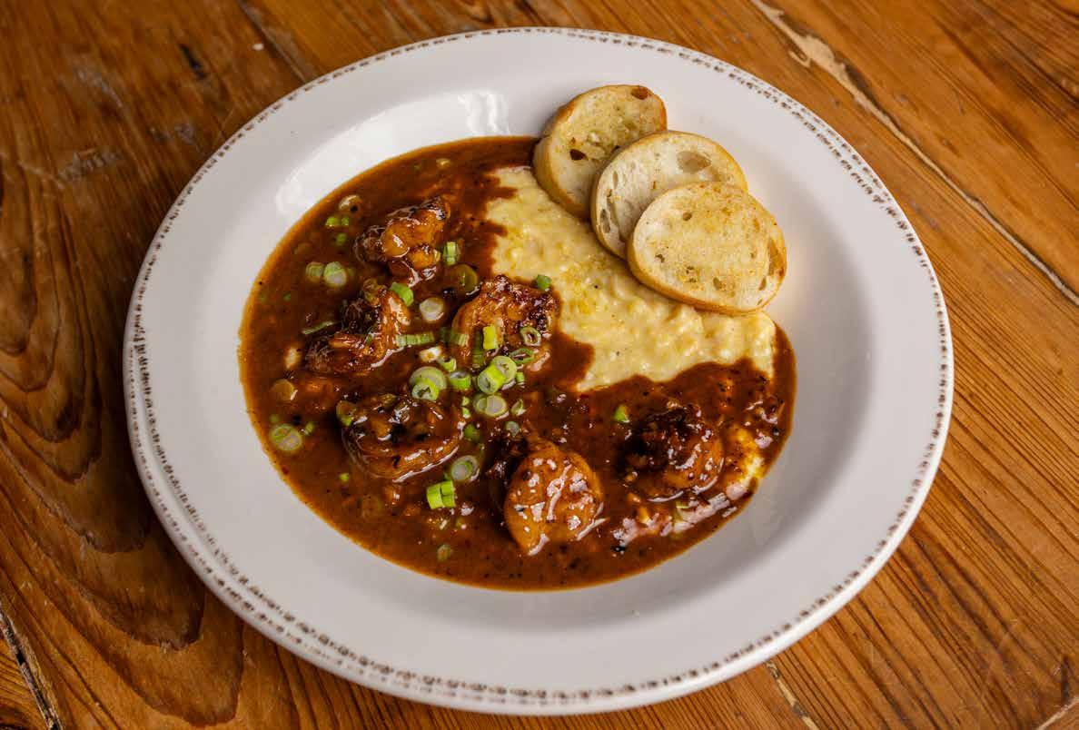 I decided on the Shrimp & Grits which had six or eight good-sized shrimp that were grilled and seasoned really well in a traditional New Orleans-style BBQ butter and served over creamy parmesan grits. It had a good flavor and texture, and it came with a side salad.