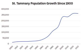 We learned from the 2020 Census that in 2020, St. Tammany Parish had about 265,000 residents and was the 4th fastest growing parish in the state. Only 3 other parishes saw a higher rate of growth than we did from 2010 to 2020.