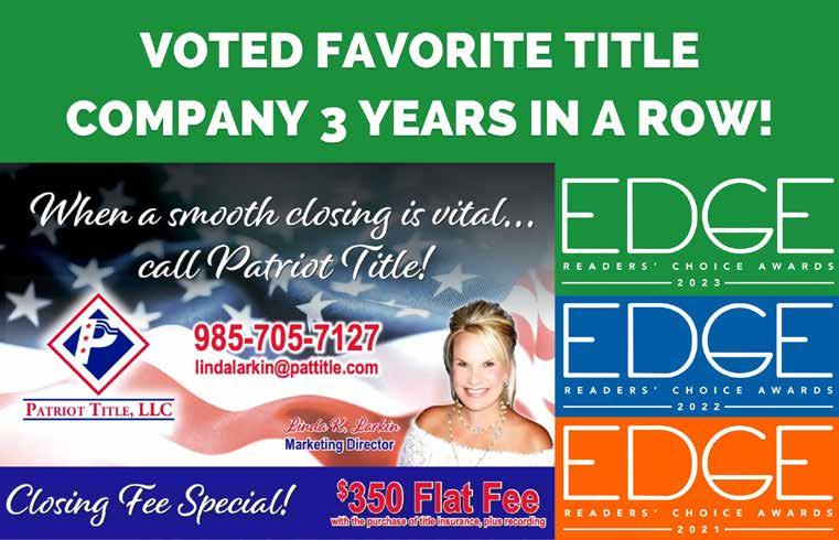 The entire contents of this magazine are copyrighted by EDGE Publishing. @ 2023 with all rights reserved. Reproduction or use without permission of editorial or graphic content in any manner is prohibited. Please email comments or story ideas to edgepublisher@yahoo.com. EDGE PUBLISHING • 69170 HWY 190 SERVICE RD. SUITE 1 COVINGTON, LA 70433 • 985.867.5990