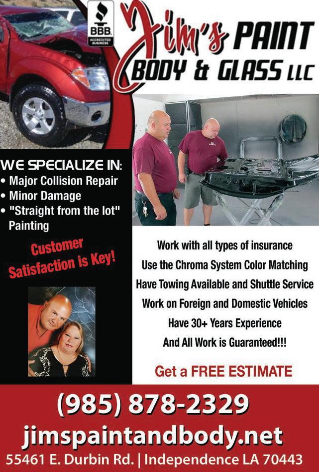 APRIL/MAY 37 HOME OF FANATICAL BANKING 888.375.3093 | fgb.net | | Member FDIC BLUMBERG AND ASSOCIATES, INC. 1180 HWY. 51 NORTH • PONCHATOULA, LA 70454 985-386-3874 • FAX 985-386-5541 www.blumgergassoc.com We insure your way of life. Auto • Home • Life • Business