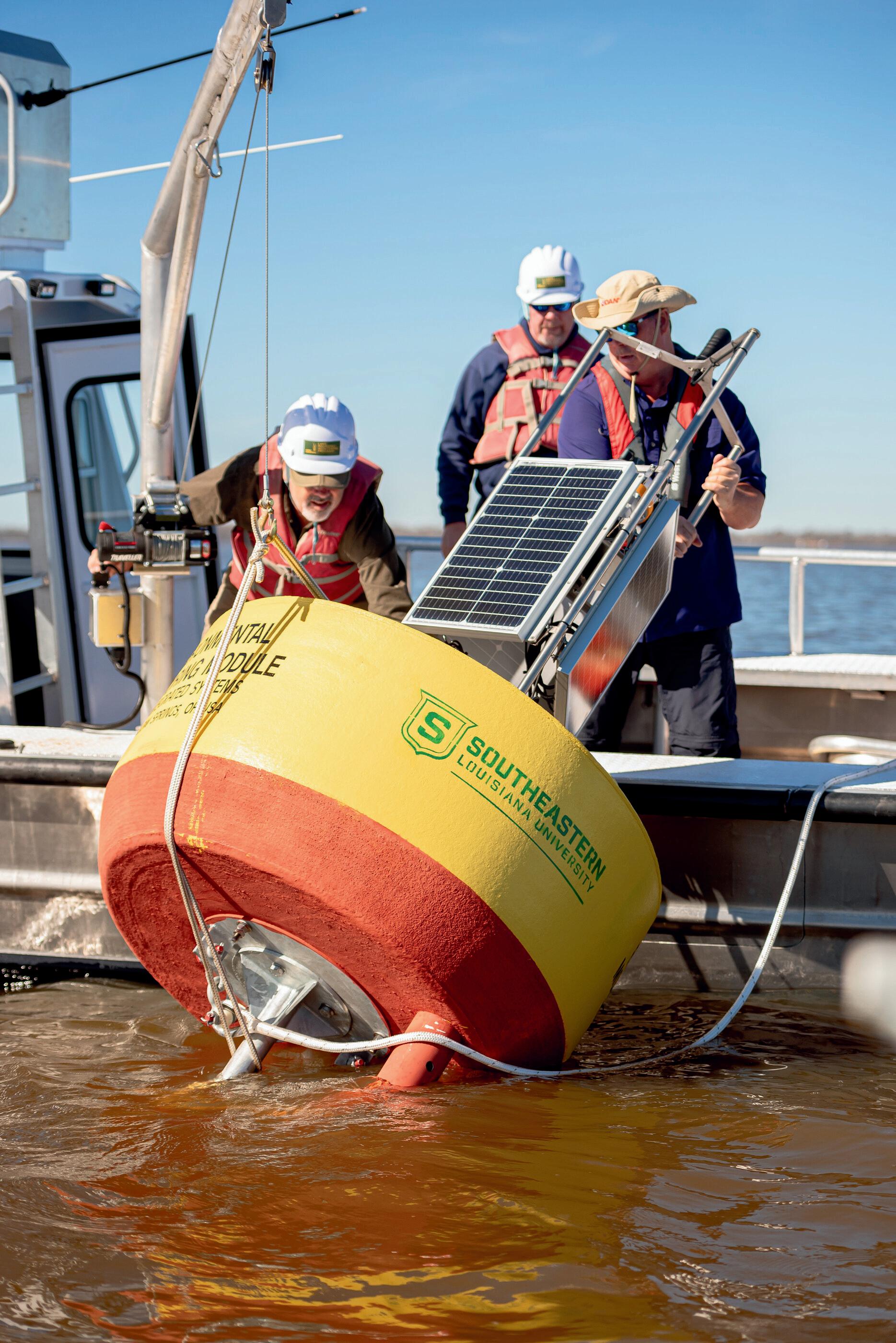 The buoys are outfitted with sensors to monitor water parameters, including dissolved oxygen, pH, water temperature, and carbon dioxide, Piller explained. One buoy will be outfitted with a weather station to measure atmospheric parameters, including wind speed, air temperature, relative humidity, barometric pressure, and precipitation. To learn more about the researchers’ work and to see data from the buoys, visit Southeastern.edu/LakeMaurepas.