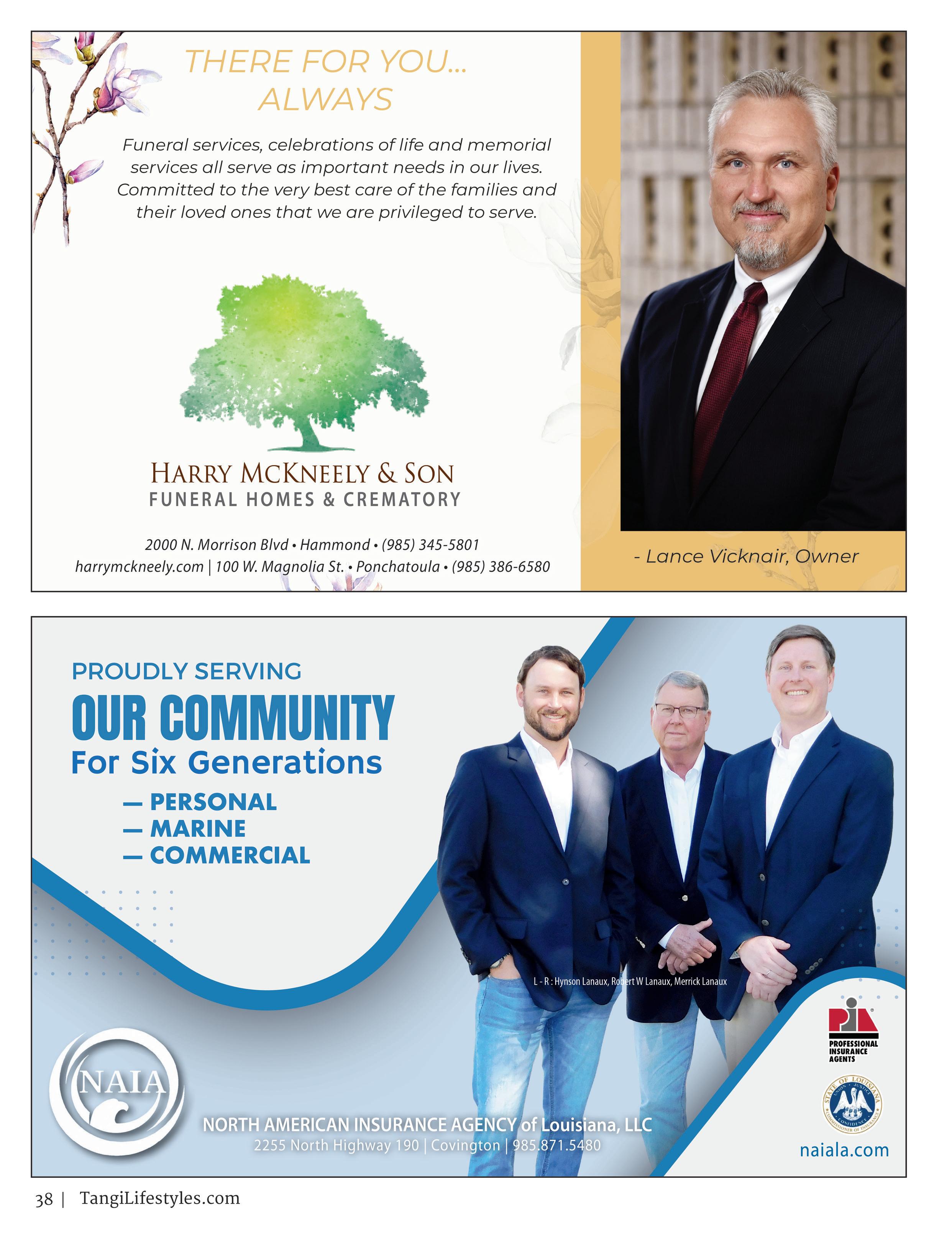 a bi-monthly publication produced by Northshore Broadcasting, 200 East Thomas Street, Hammond, LA 70401. All rights reserved. Tangi Lifestyles is staffproduced and cannot be held responsible for any unsolicited materials. Reproduction in whole or in part without permission is prohibited. The
